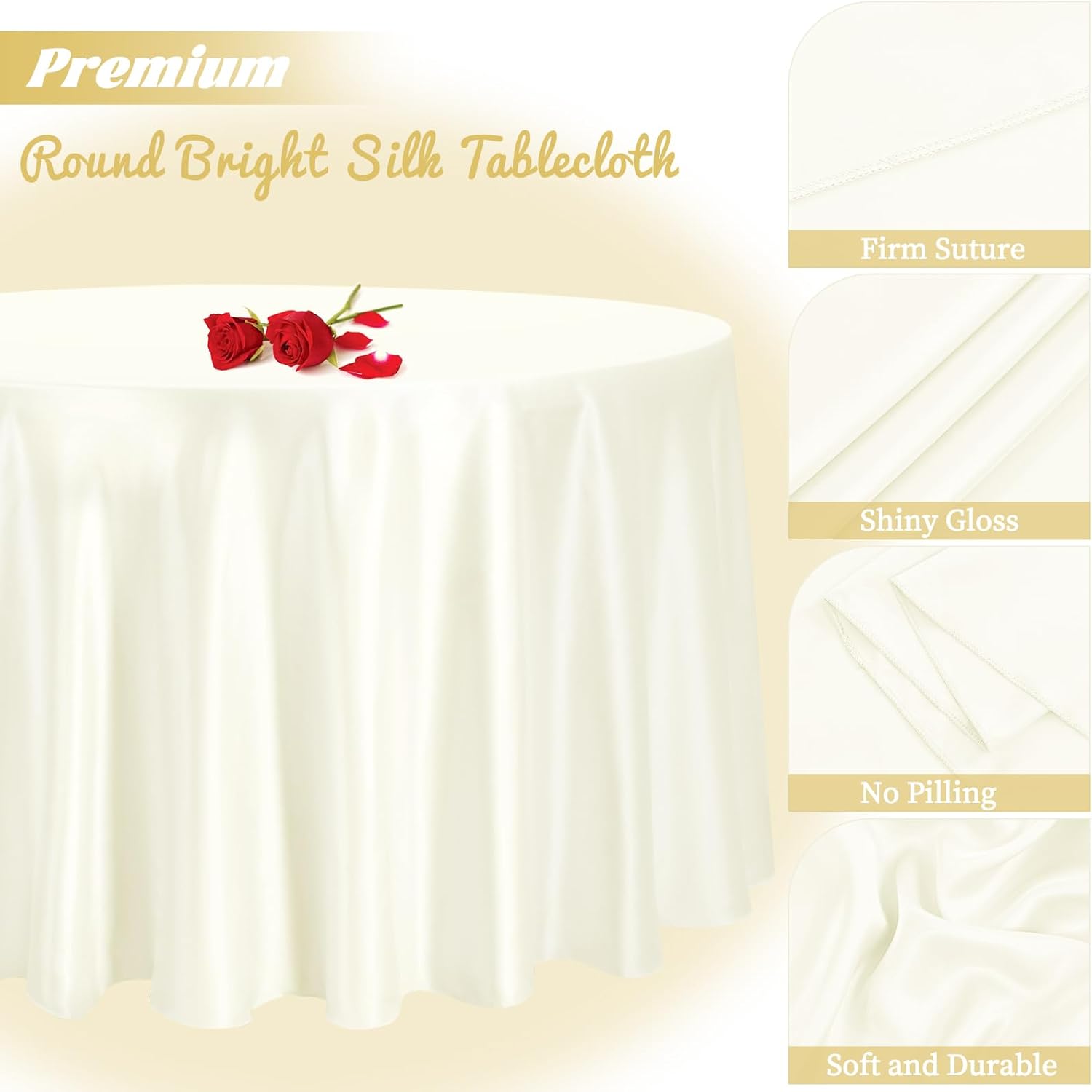 fani 12 Pack 108 Inch Ivory Satin Tablecloth - Premium Bright Silky Round Tablecloth Overlay Smooth Fabric Table Cover, Table Decoration for Wedding Party Banquet Events Restaurant Kitchen Dining