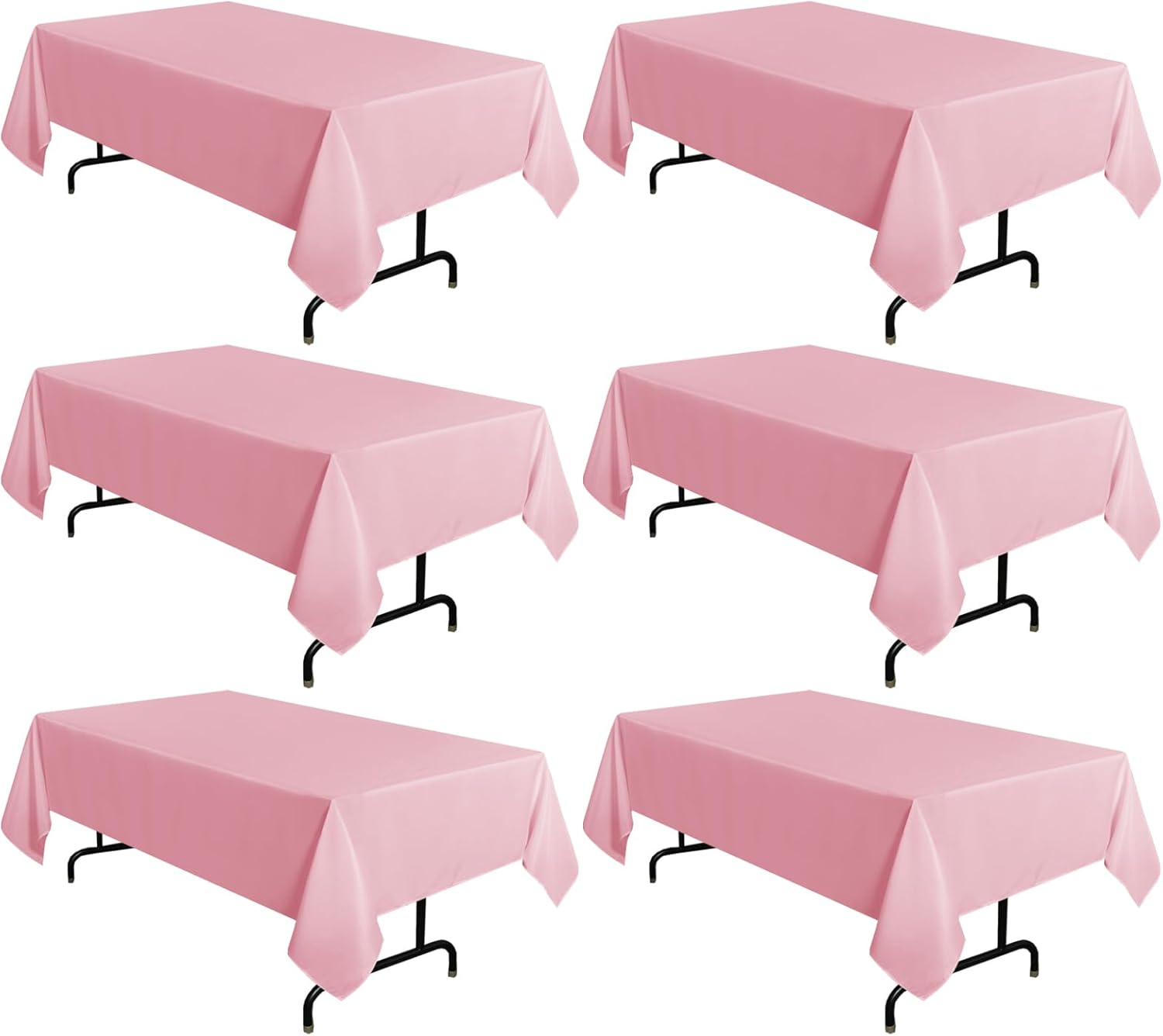 sancua 6 Pack Pink Tablecloth 60 x 102 Inch, Rectangle Table Cloth for 6 Feet Tables - Stain and Wrinkle Resistant Washable Polyester Table Cover for Dining Tables, Buffet Parties and Camping