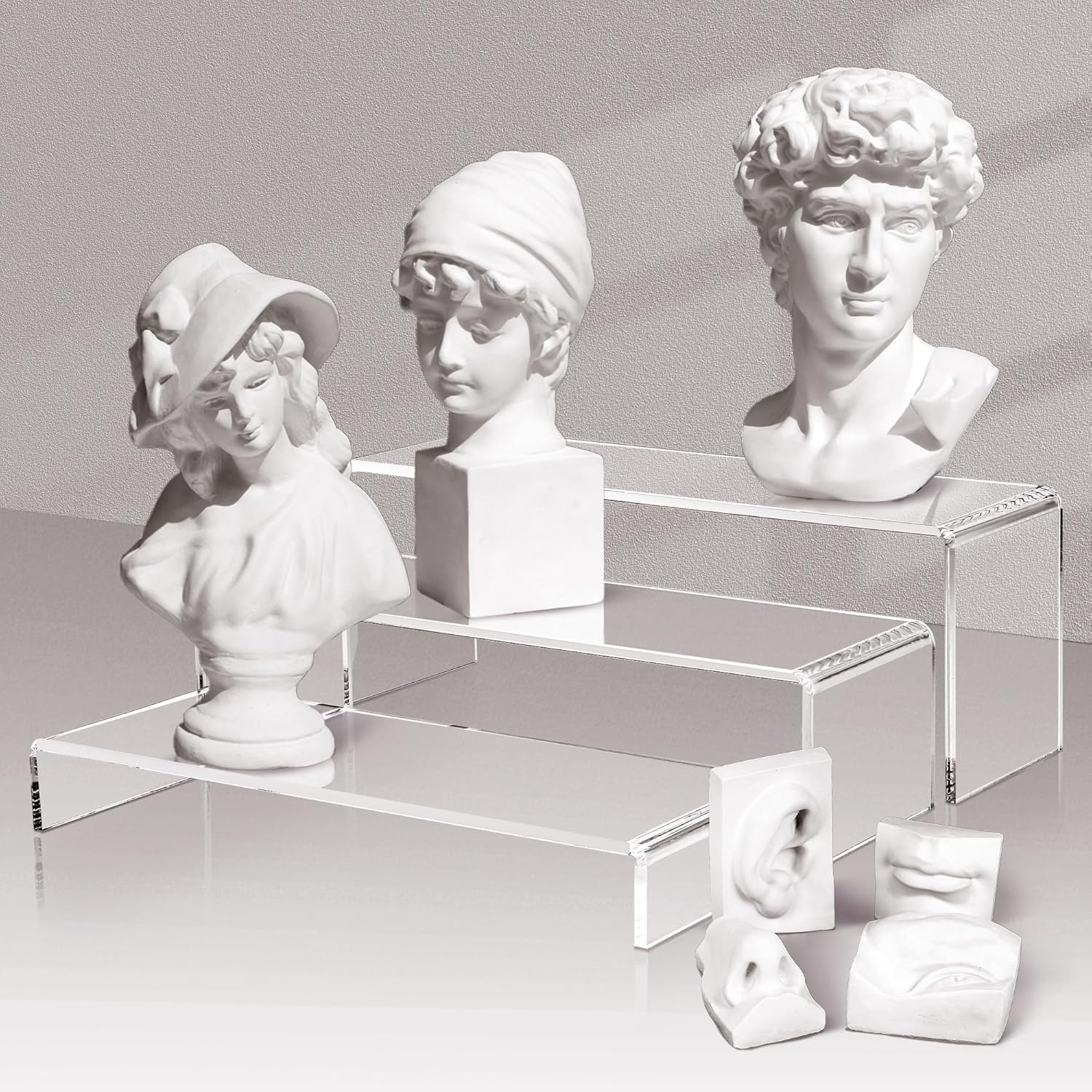 1 Set Large Acrylic Clear Display Risers, 3 Sizes 12" Rectangular Showcase Collectibles Display Shelf, 5 mm Thick Desktop Display Stand Holder for Figures, Jewelry, Perfume, Toys