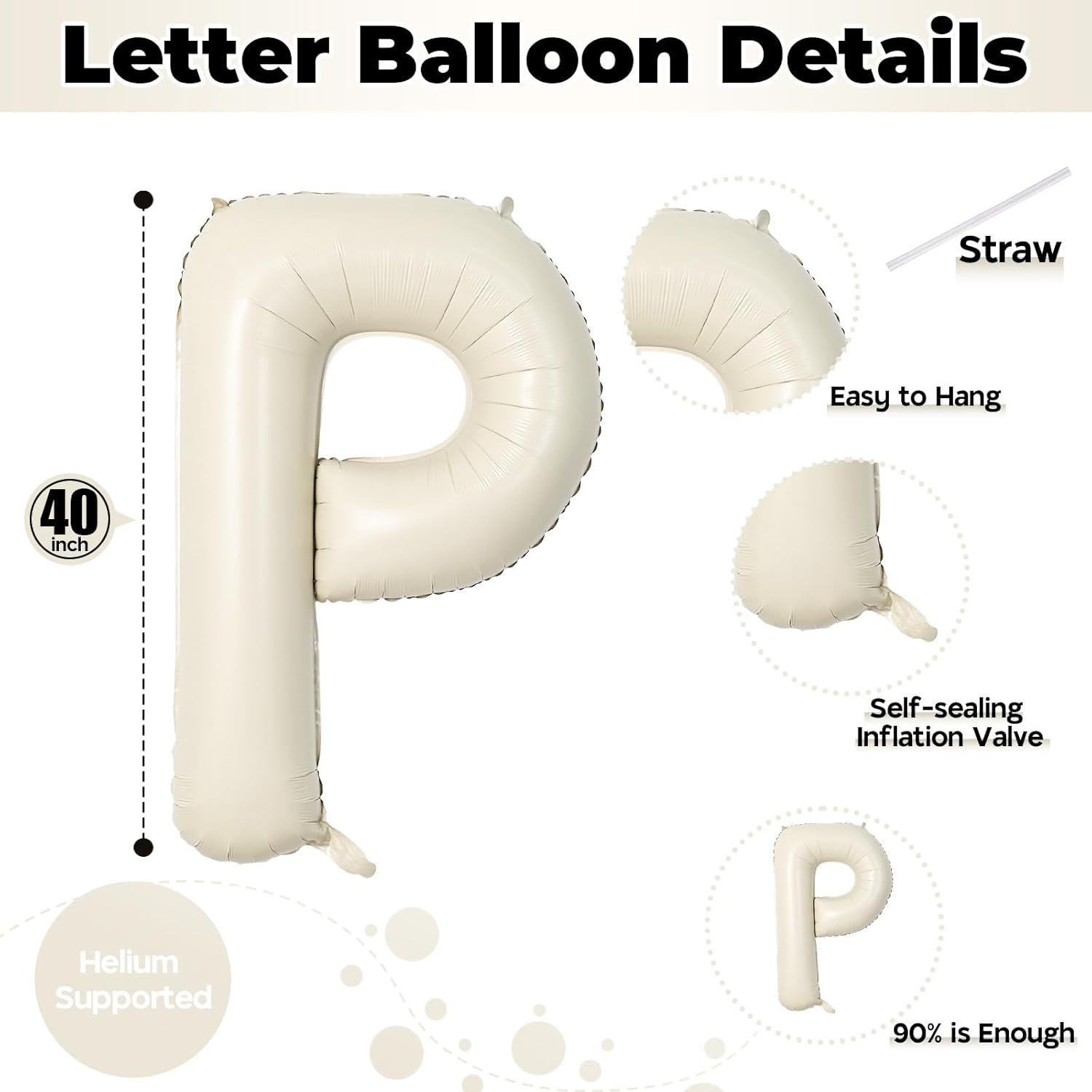 • 🎈 What You Get: Our product package includes 1pcs 40 inch "P" letter foil cream white balloon and 1pcs convenient straw for inflate. You can choose any big letter balloons to combine and customize the word you want to form. Make your party more unique and meaningful.