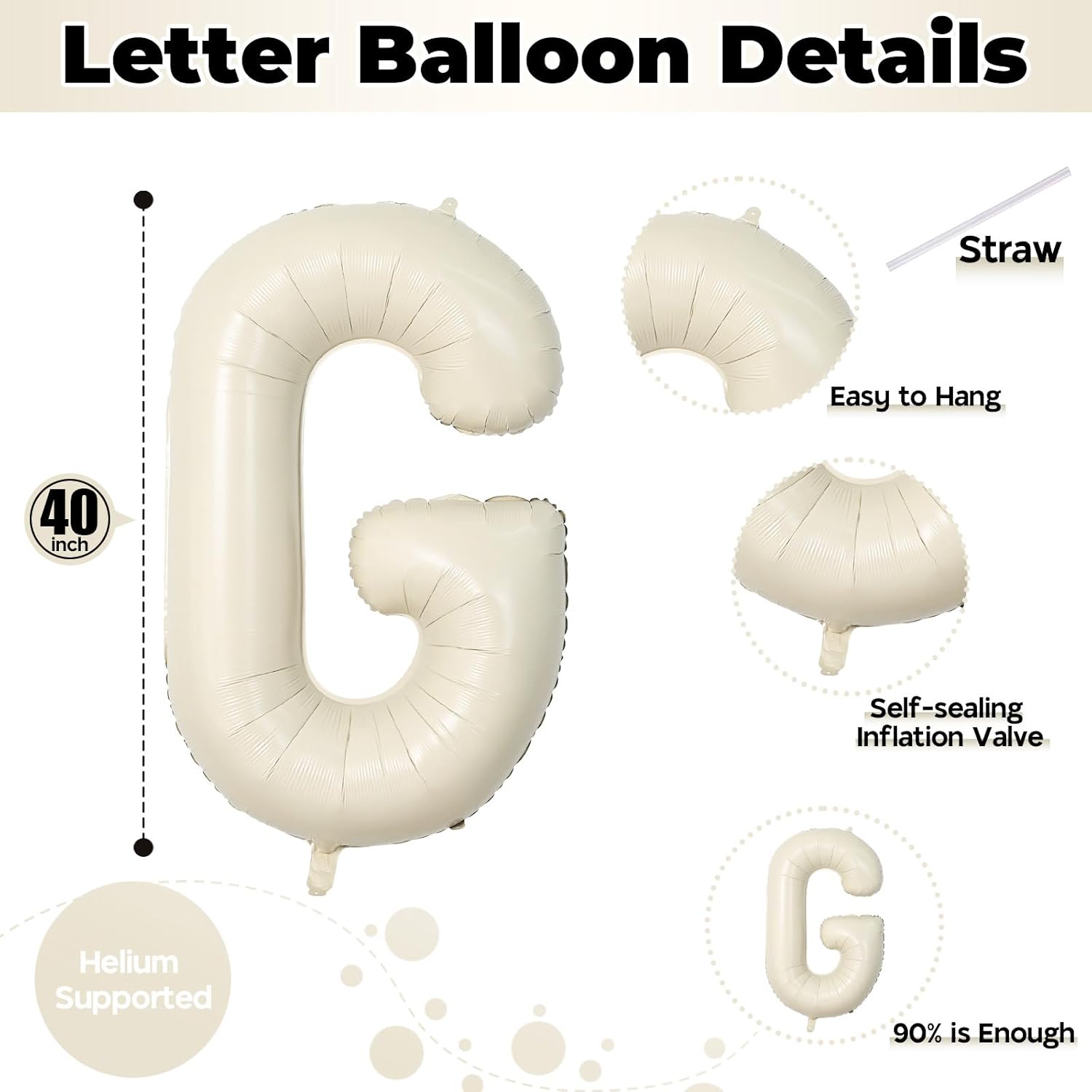 40 Inch Custom Letter Balloons, Giant Alphabet G Foil Name Balloon Cream White, Mylar Self Inflating Beige G, Helium Customize for Women Birthday Party Decoration