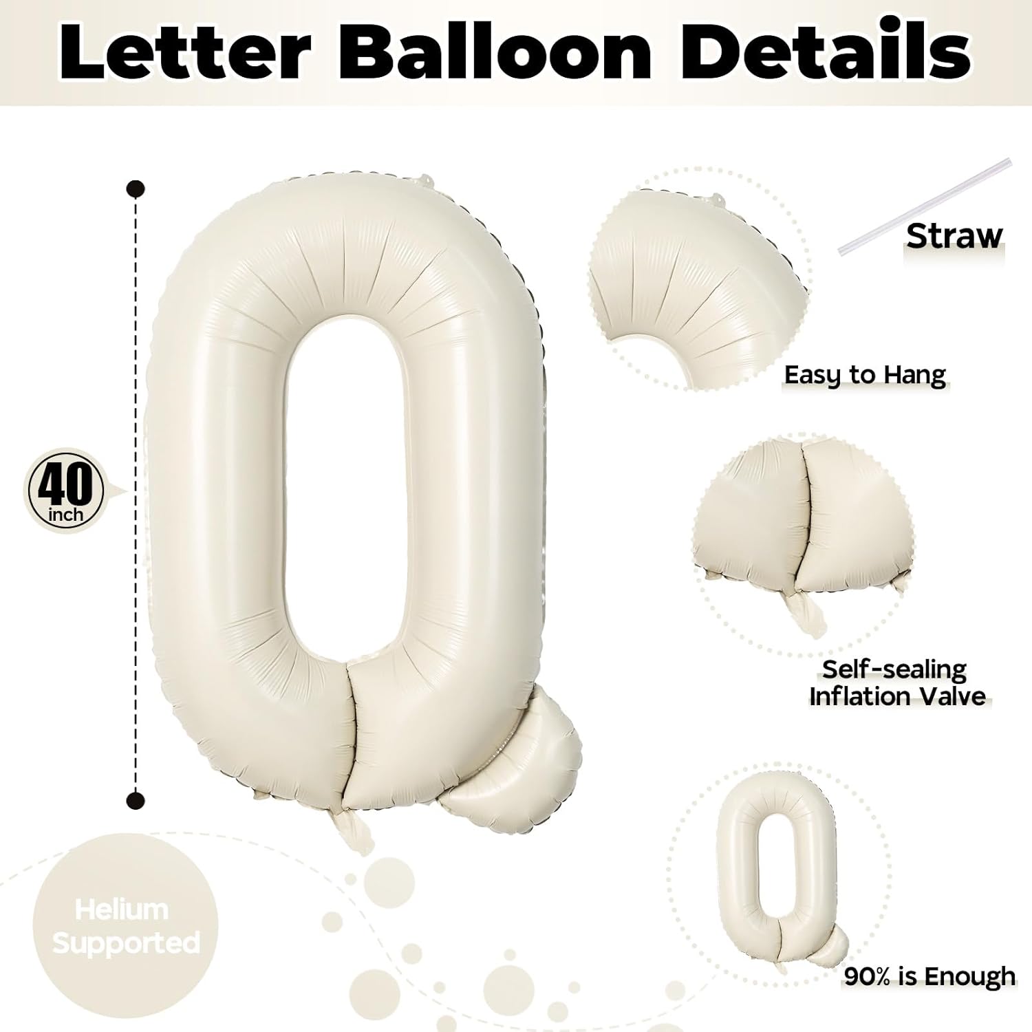 • 🎈 What You Get: Our product package includes 1pcs 40 inch "Q" letter foil cream white balloon and 1pcs convenient straw for inflate. You can choose any big letter balloons to combine and customize the word you want to form. Make your party more unique and meaningful.