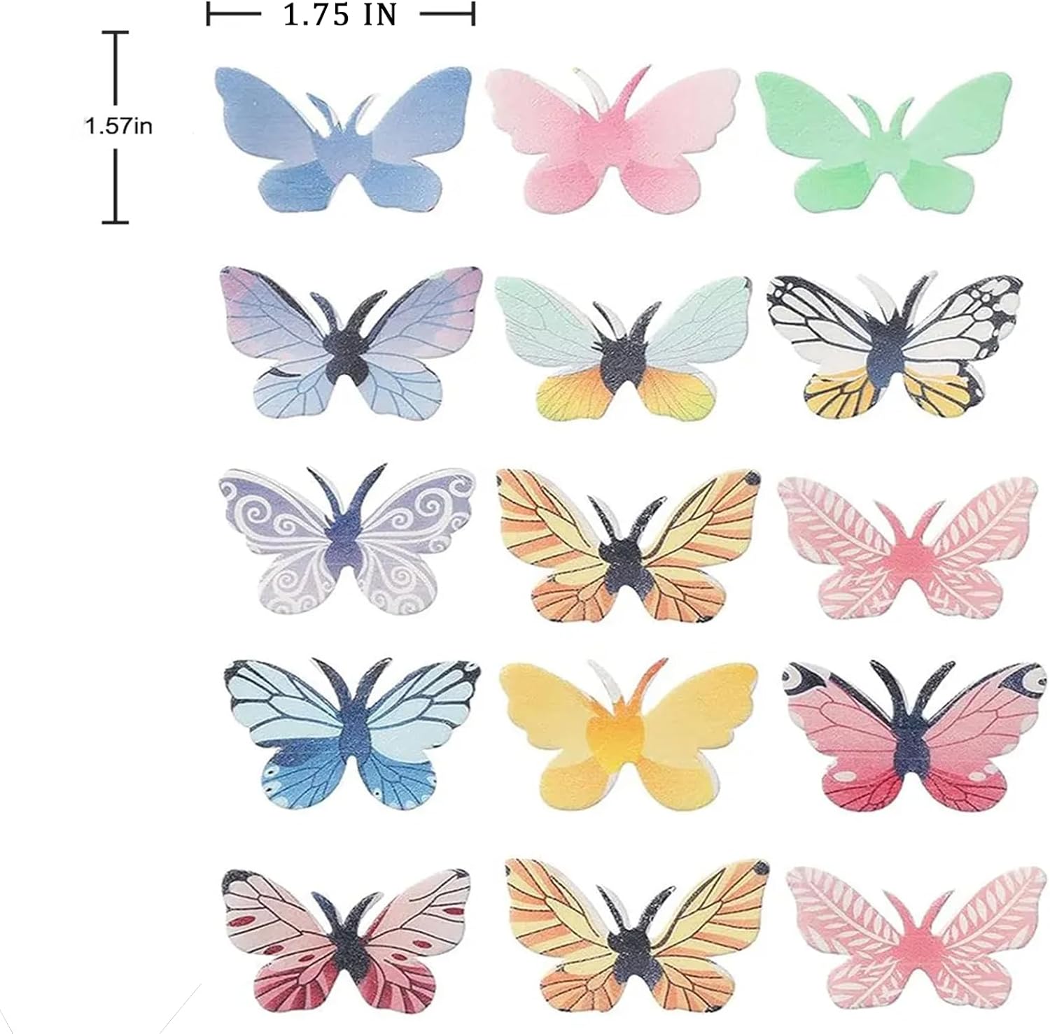 • Package:Wafer paper butterflies comes with 72pcs edible butterfly cake toppers, package with a box . It’s much convenient to storage and can be gift. Wing spans vary is about 1.5 inches mix color