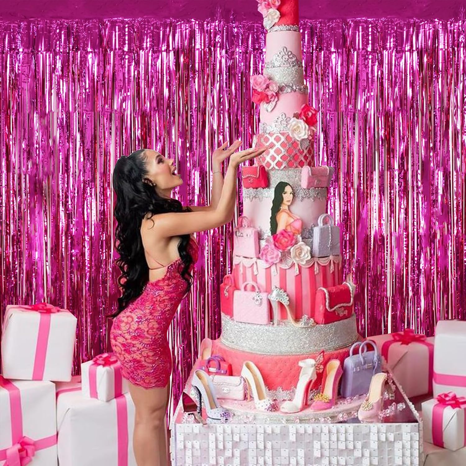 • 【Best Decorations】Combine the shiny tinsel fringe curtain and the balloons, banner to turn your home into the party place. All your friends and your family will be surprised by your Hot pink style party decorations!