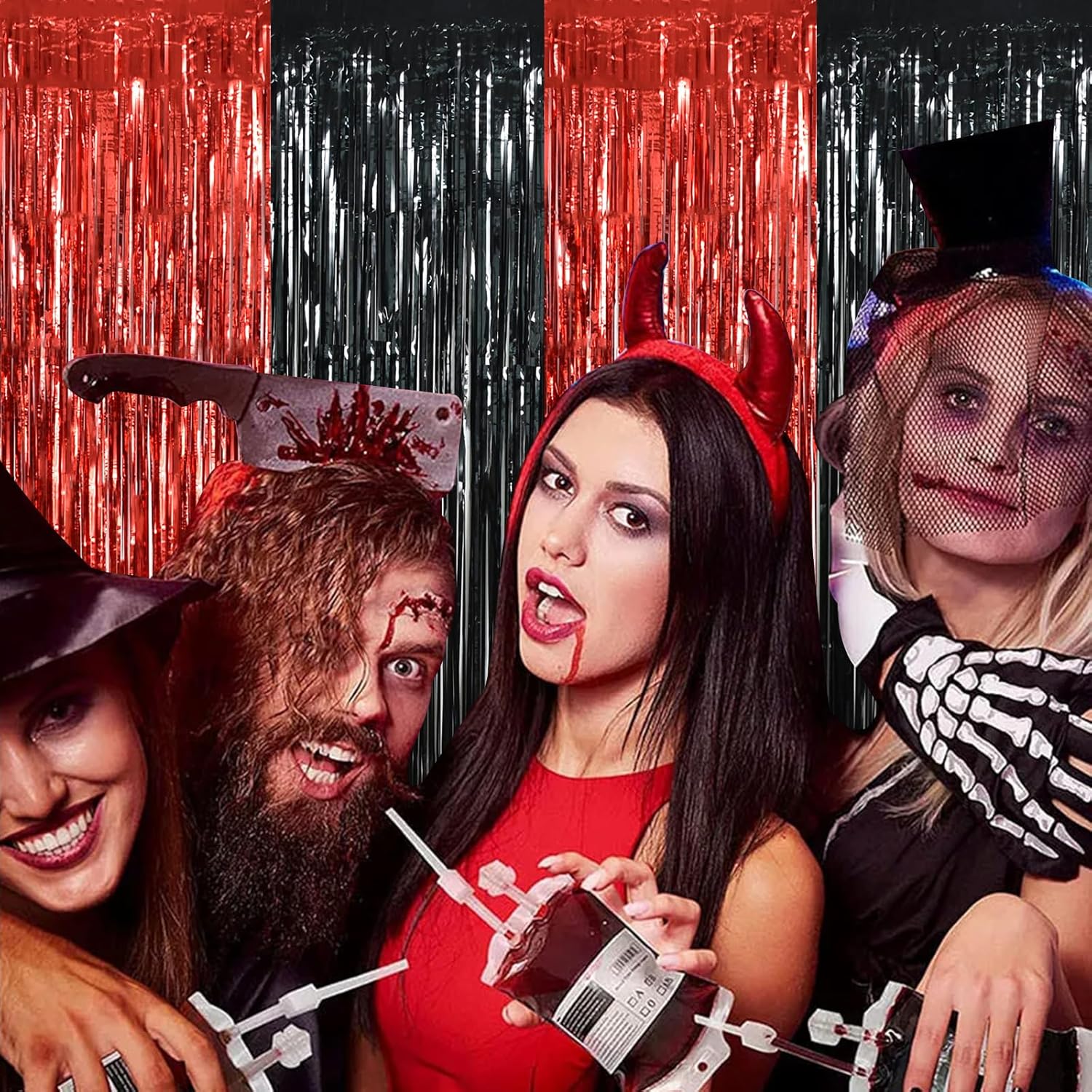 BEISHIDA 4 Pcs Red and Black Door Streamers Foil Curtain Red and Black Party Decoration Backdrop for Casino Theme Scream Halloween Supplies Graduation Birthday Party Decorations (3.28 ft x 6.56 ft)