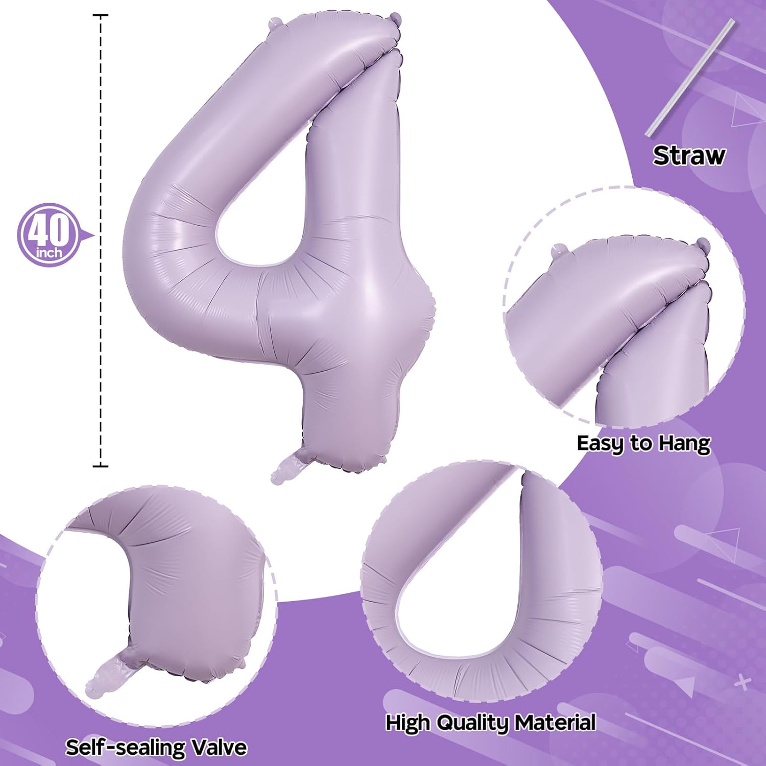 • ๐Ÿ’• Pastel Purple Number 4 Balloon ๐Ÿ’• - You will get 1pc 40 inch light purple mylar foil number 4 balloon and 1pc straw. Perfect for 4th 14th 40th birthday or anniversary party decorations supplies.