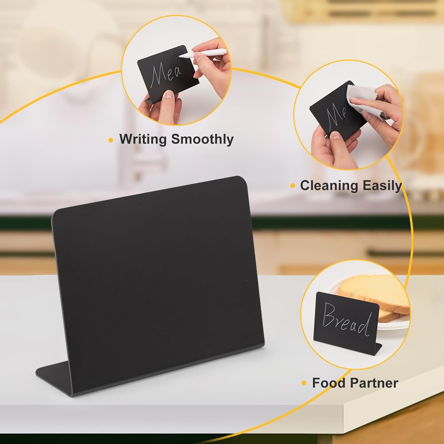 • Various Application: Small plastic blackboard signs are for parties, buffets, birthdays, weddings to as table numbers, reservation signs, buffet display, place cards, name tag, price tag, warning and welcome signs, plant displays, buffet display