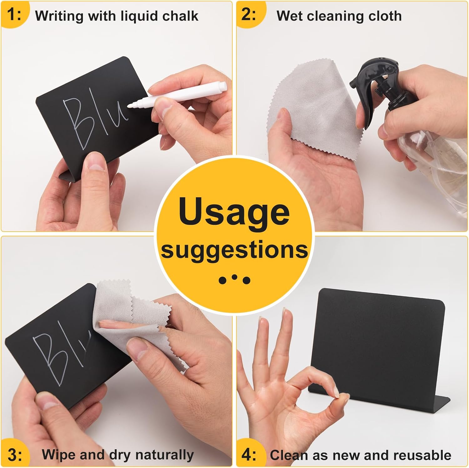 • Reusable Sign: Mini chalkboards signs as place cards for table setting are easy to write and erase, can be written repeatedly. Liquid chalk will give you a good experience