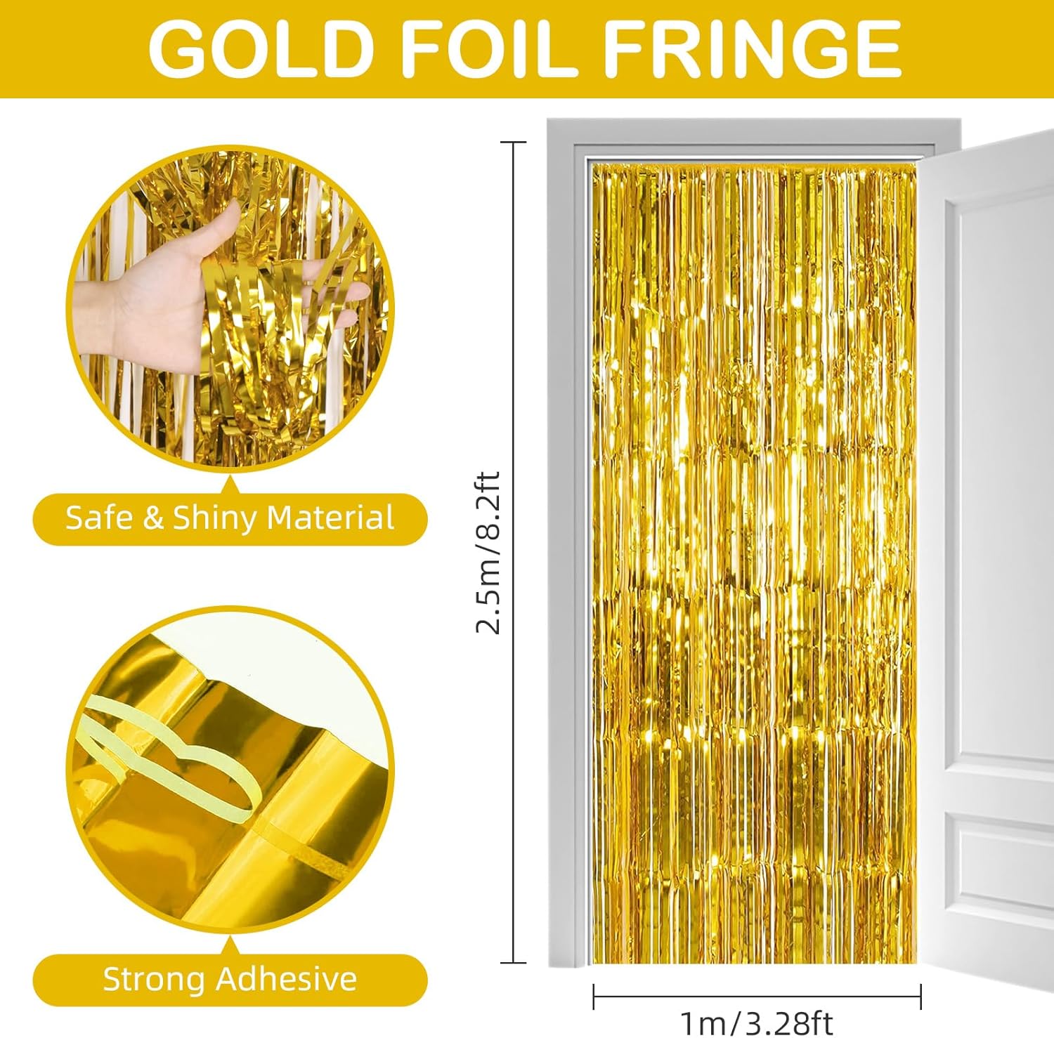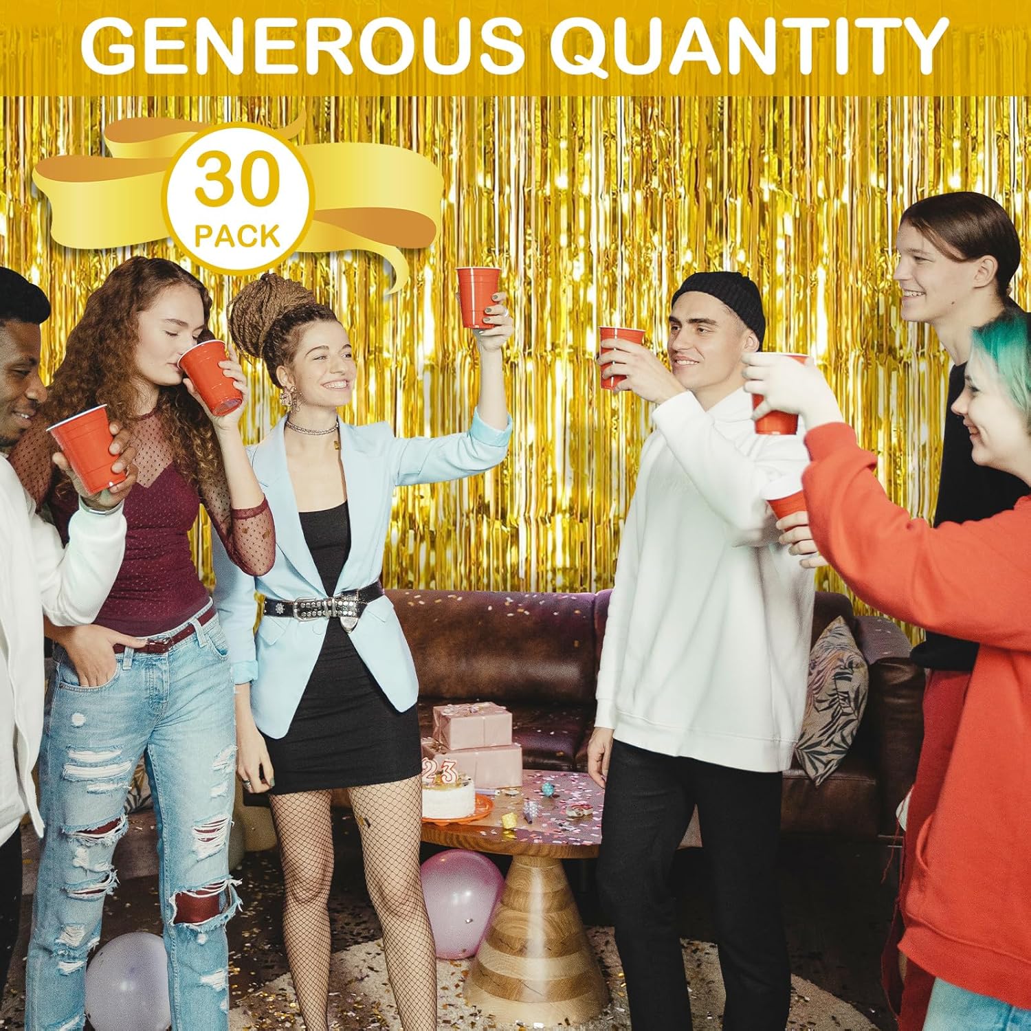 30 Pack Gold Foil Fringe Curtain Backdrop, 3.3x8.2 Feet Metallic Tinsel Streamer Curtains Photo Booth Props for Birthday/Wedding/Graduation/Baby Shower/Christmas/New Year/Disco Party Decorations
