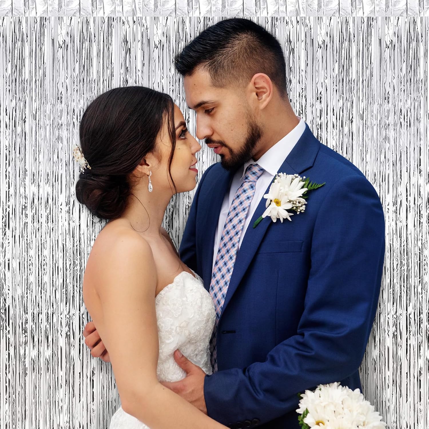 30 Pack Silver Foil Fringe Curtain Backdrop, 3.3x8.2 Feet Metallic Tinsel Streamer Curtains Photo Booth Props for Birthday/Wedding/Bachelorette/Baby Shower/Christmas/New Year/Disco Party Decorations