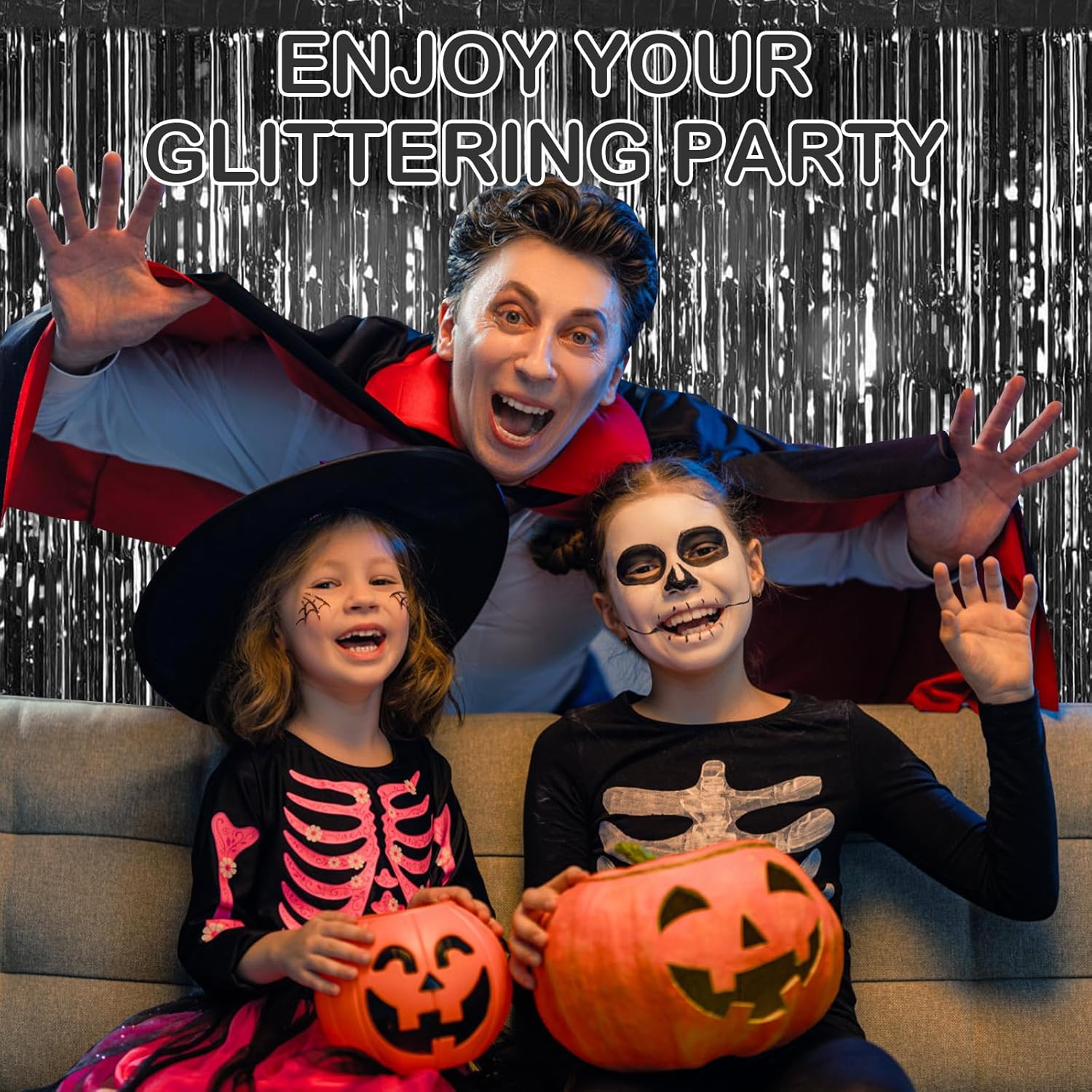30 Pack Black Foil Fringe Curtain Backdrop, 3.3x8.2 Feet Metallic Tinsel Streamer Curtains Photo Booth Props for Birthday/Graduation/Bachelorette/Halloween/Christmas/New Year/Disco Party Decorations