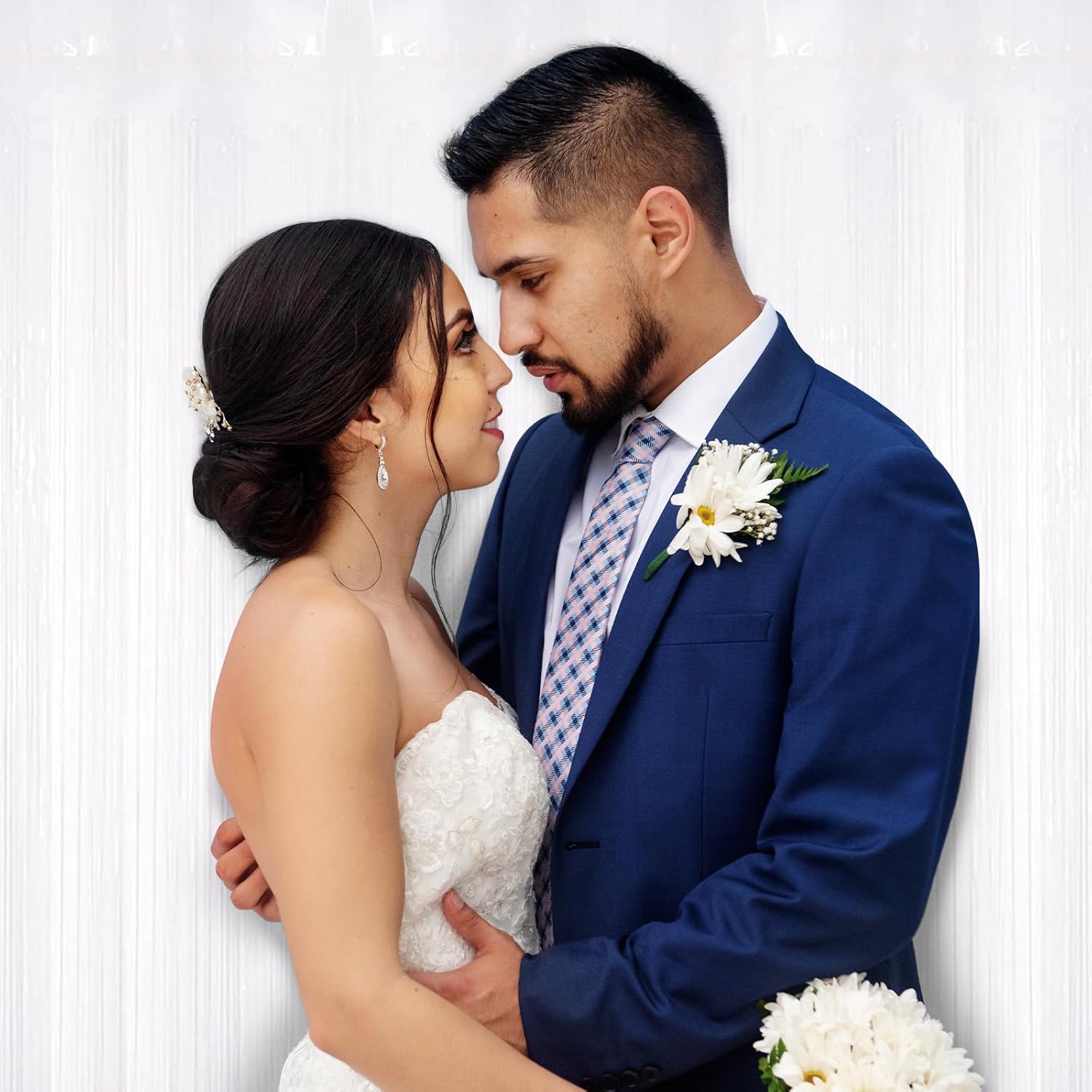 30 Pack White Foil Fringe Curtain Backdrop, 3.3x8.2 Feet Metallic Tinsel Streamer Curtains Photo Booth Props for Wedding/Anniversary/Bridal Shower/Christmas/New Year/Valentine's Day Party Decorations