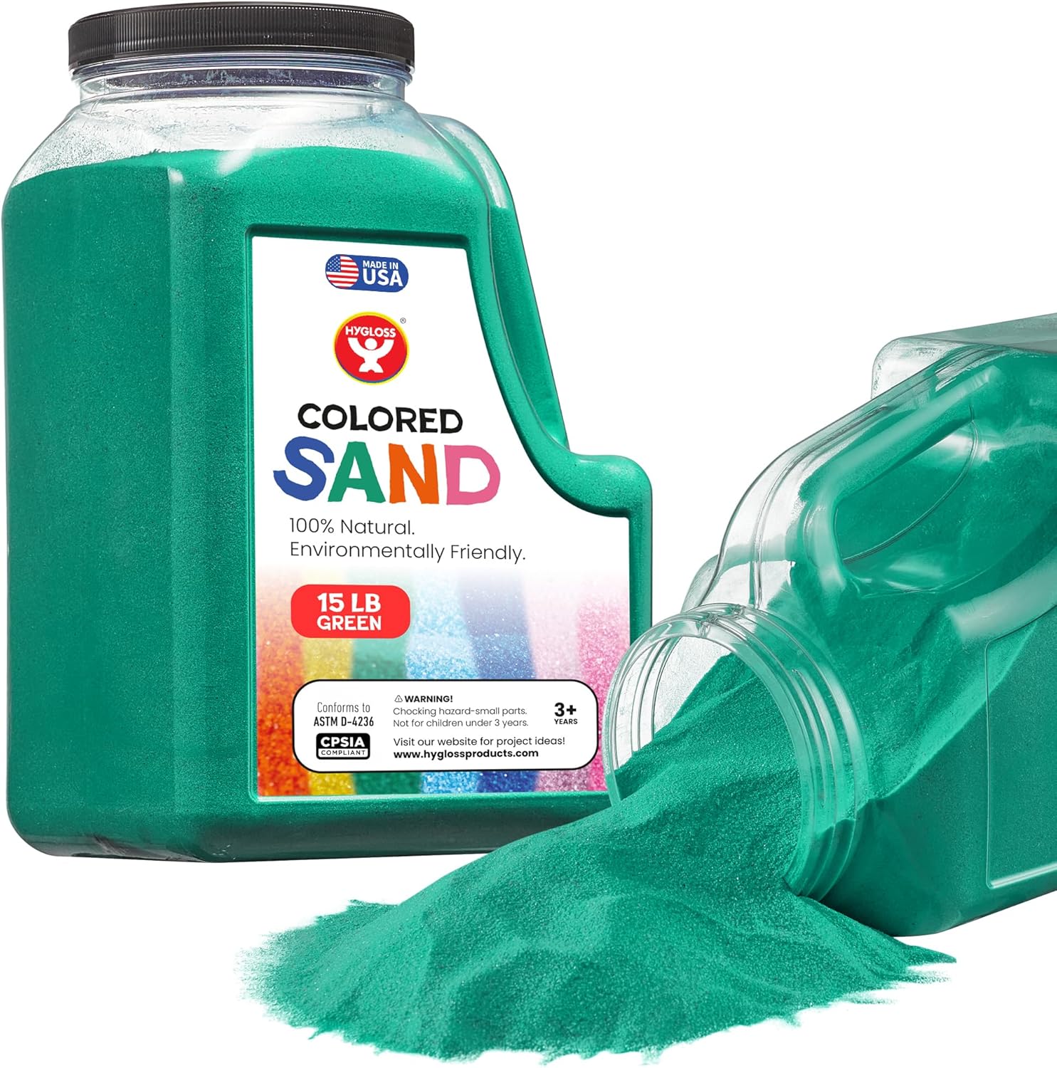 Hygloss Colored Sand for Crafts - 15 lb Bottle, Green Vibrant Colorful Fine Sensory Play Sand Art Kits for Kids - Classroom Activities for Children 3 4 5 6 7 8 9 10 11 12 - Safe for Ages 3+