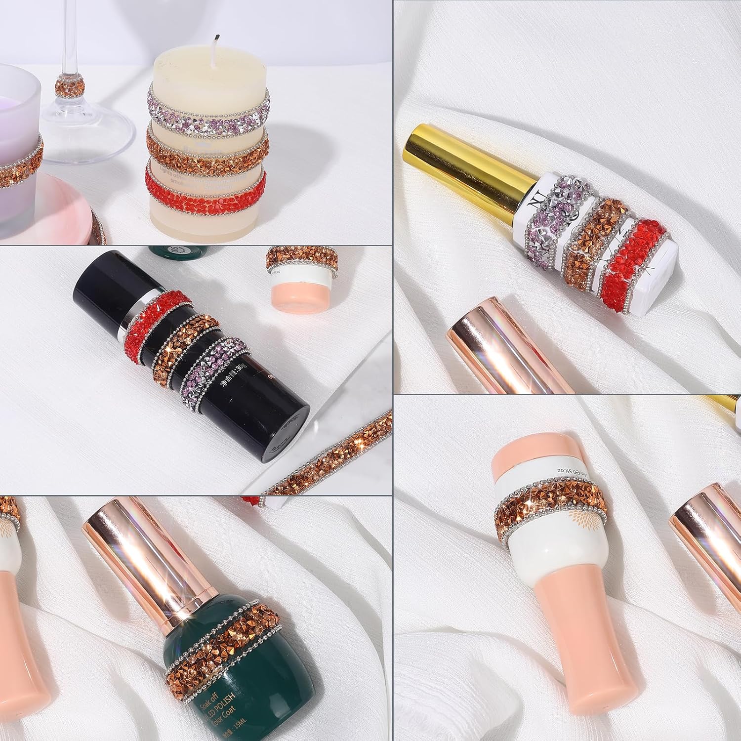 • Wide Applications: The bling rhinestone sticker strip is suitable for many DIY decorations, mirrors, candles, vases, photo frames, costumes, home decor, offices, gardens, cars, personalized phone cases, jewelry boxes, and other places.