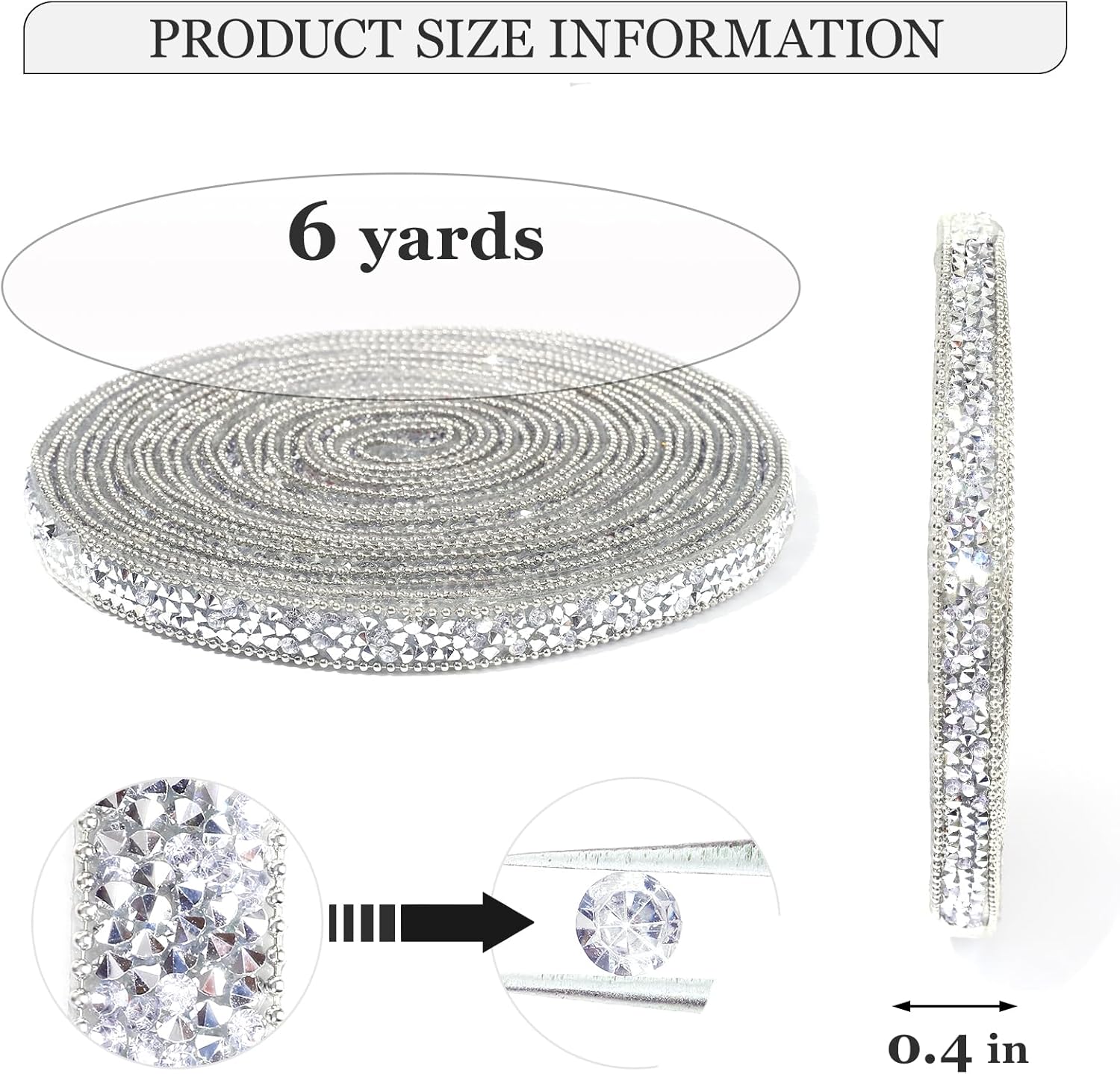 • Silver Rhinestone Ribbon: 1 roll of self-adhesive rhinestone ribbon Sticker, approx 6 yards in length, 1cm/0.4inch in width. (PACKAGE CONTENT)