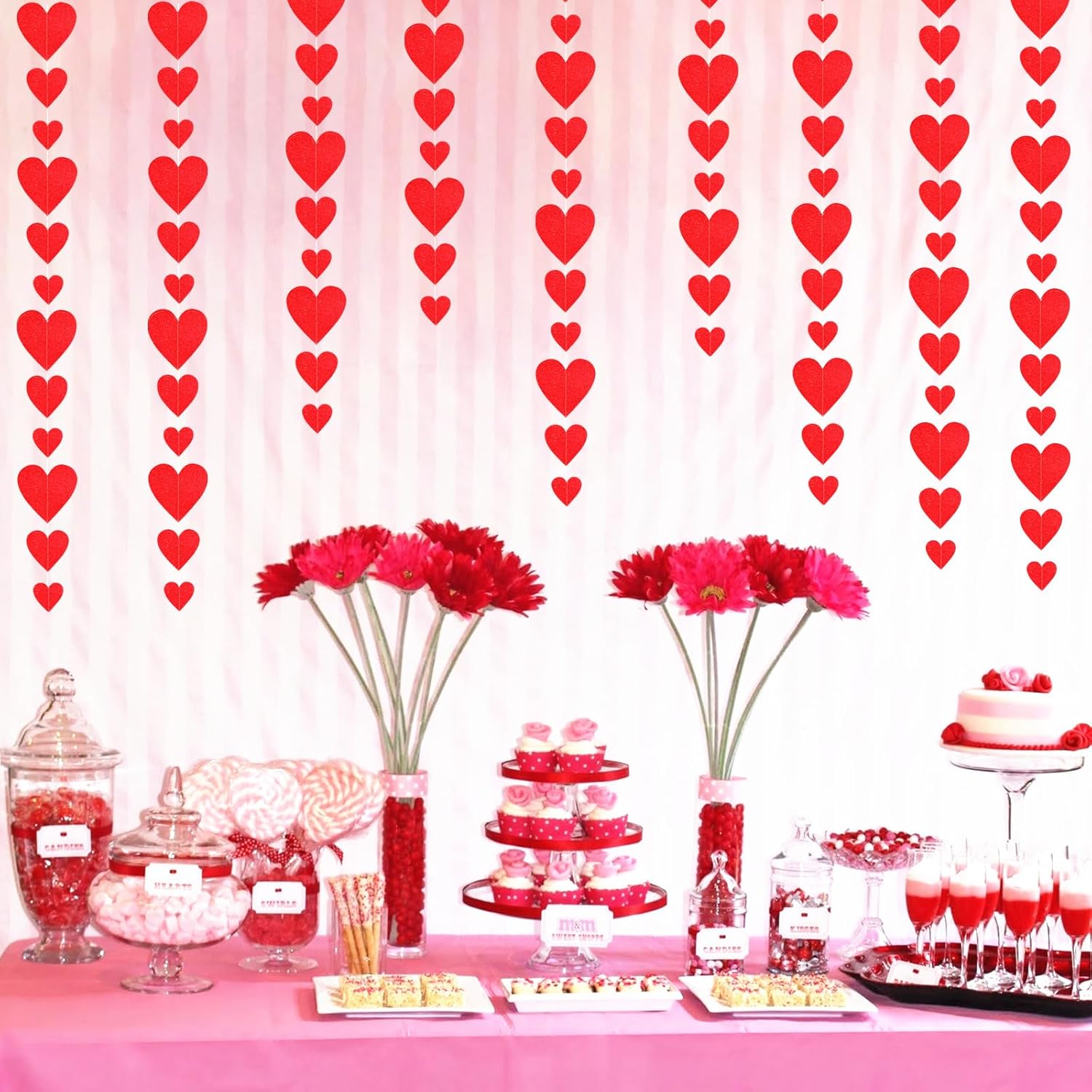 • 【Material】The material is eco-friendly double side gittler red which don't drop glitter.You can cut to any length you want if you need shorter length.The hearts are cut very neatly.