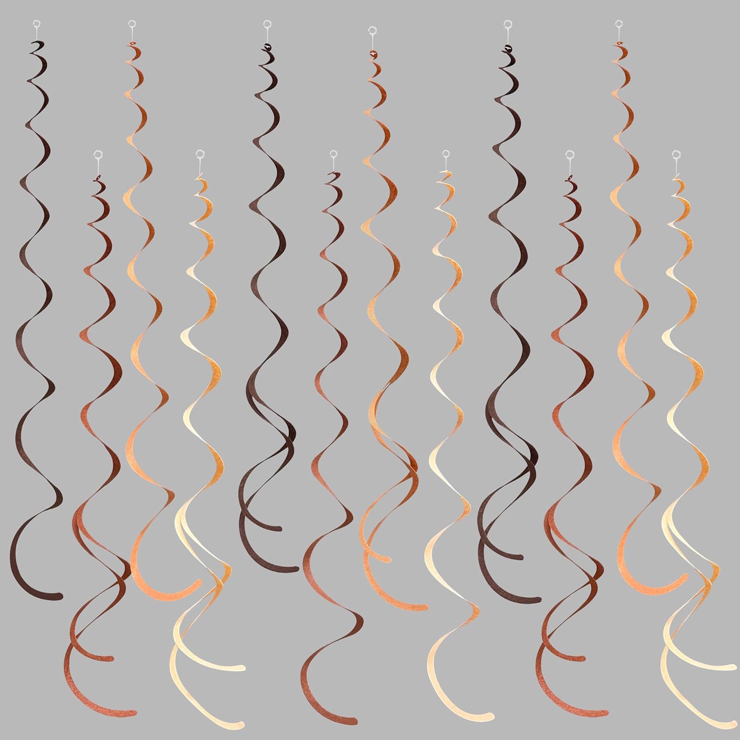 • ๐ŸคŽPackage Contains - 36 packs of brown coffee ombre color swirl party streamer,Each swirl can extends to approximately about 2.62 feet long,Meeting daily general needs.Comes with 40 plastic hooks for hanging.