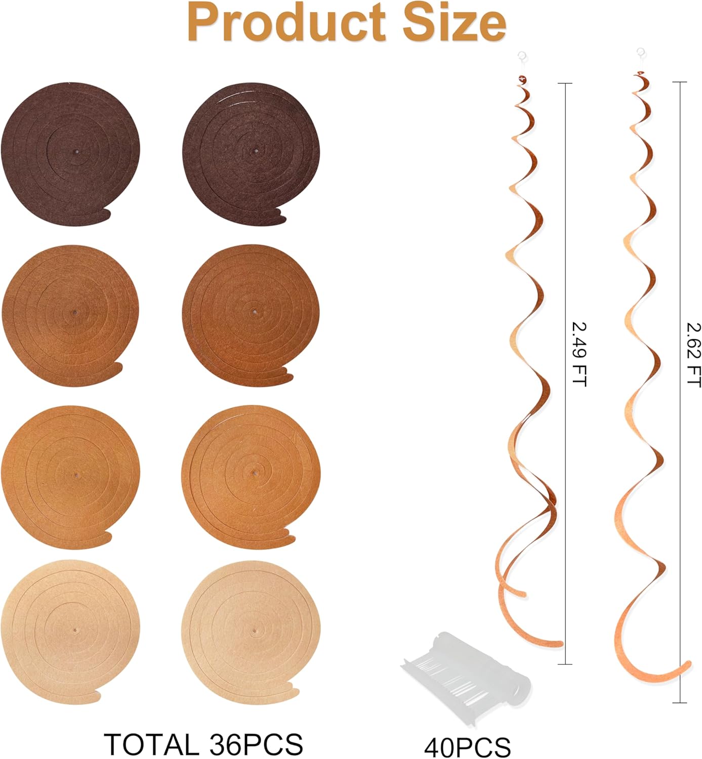 • ๐ŸคŽHigh Quality - Our felt swirl hanging decorations kit are made of high-quality felt in gradient brown color(Coffee.Brown.Khaki.Beige),Soft texture and safer than PVC swirls.durable and reusable.and the color is more brilliant than general PVC whirls.