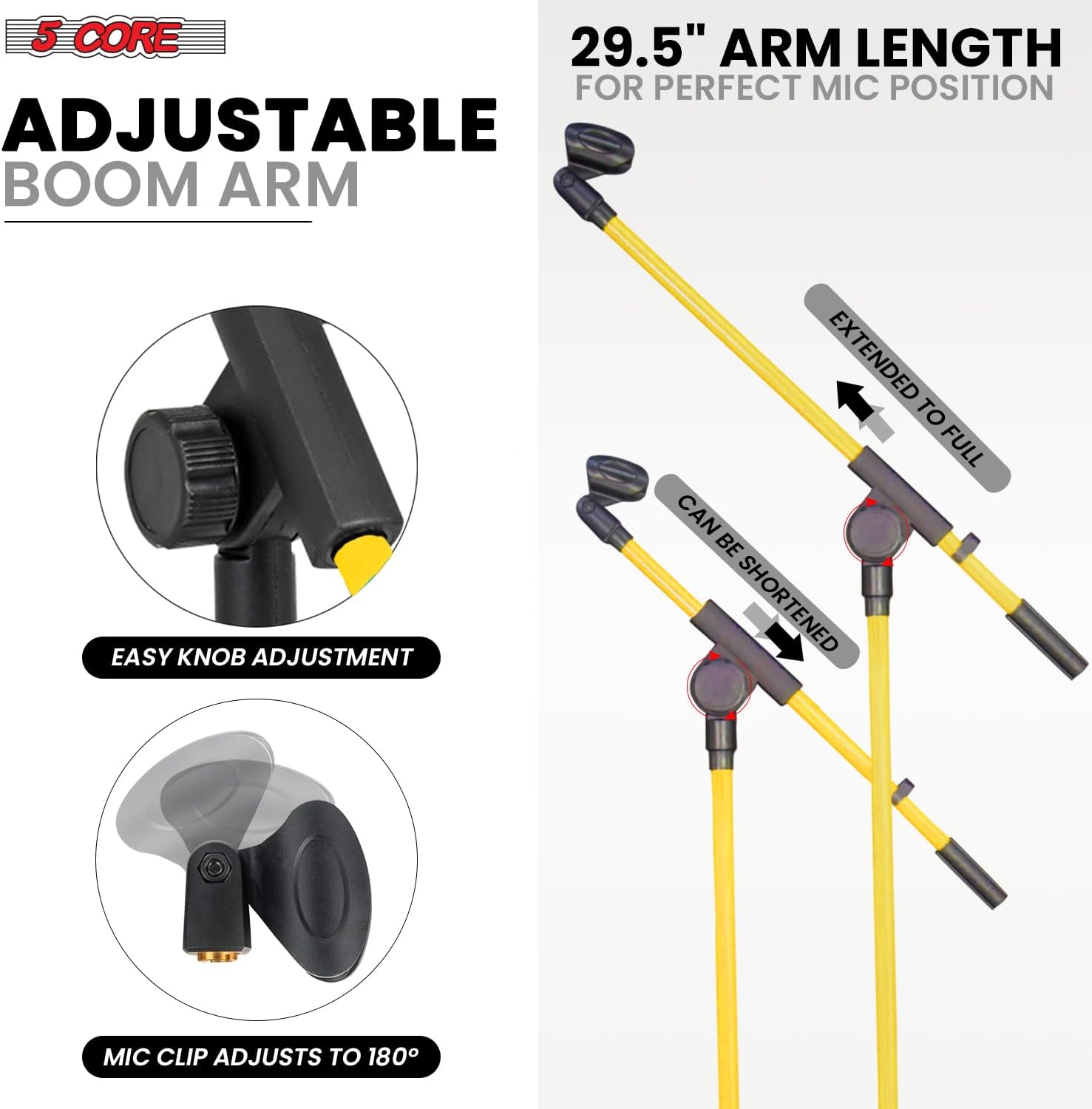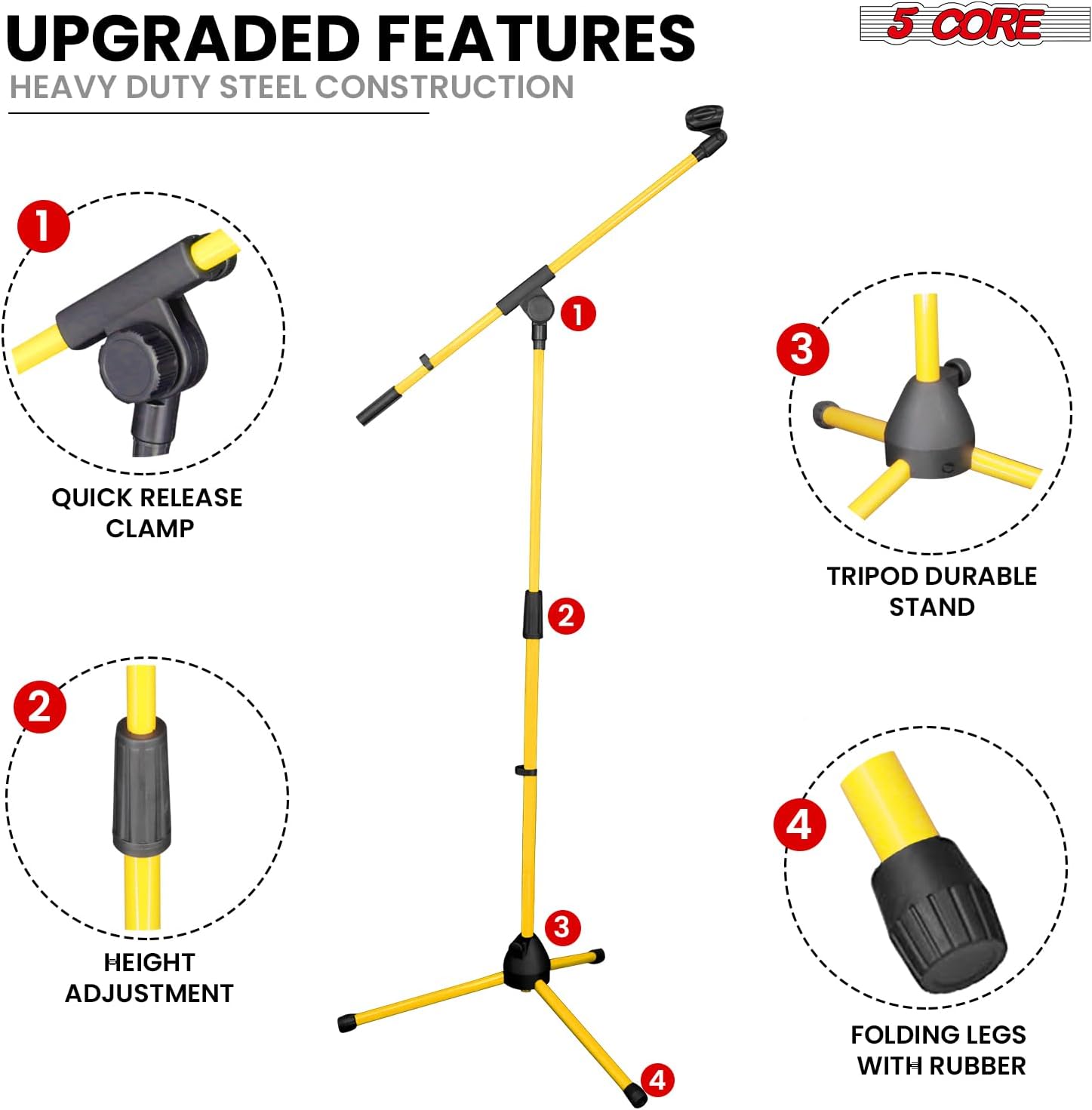 5 Core Tripod Mic Stand Floor Adjustable 18 to 72 Inches Sturdy Boom Arm Holder Microphone Stands Pedestal Para Microfono for Singing - MS 080 YLW