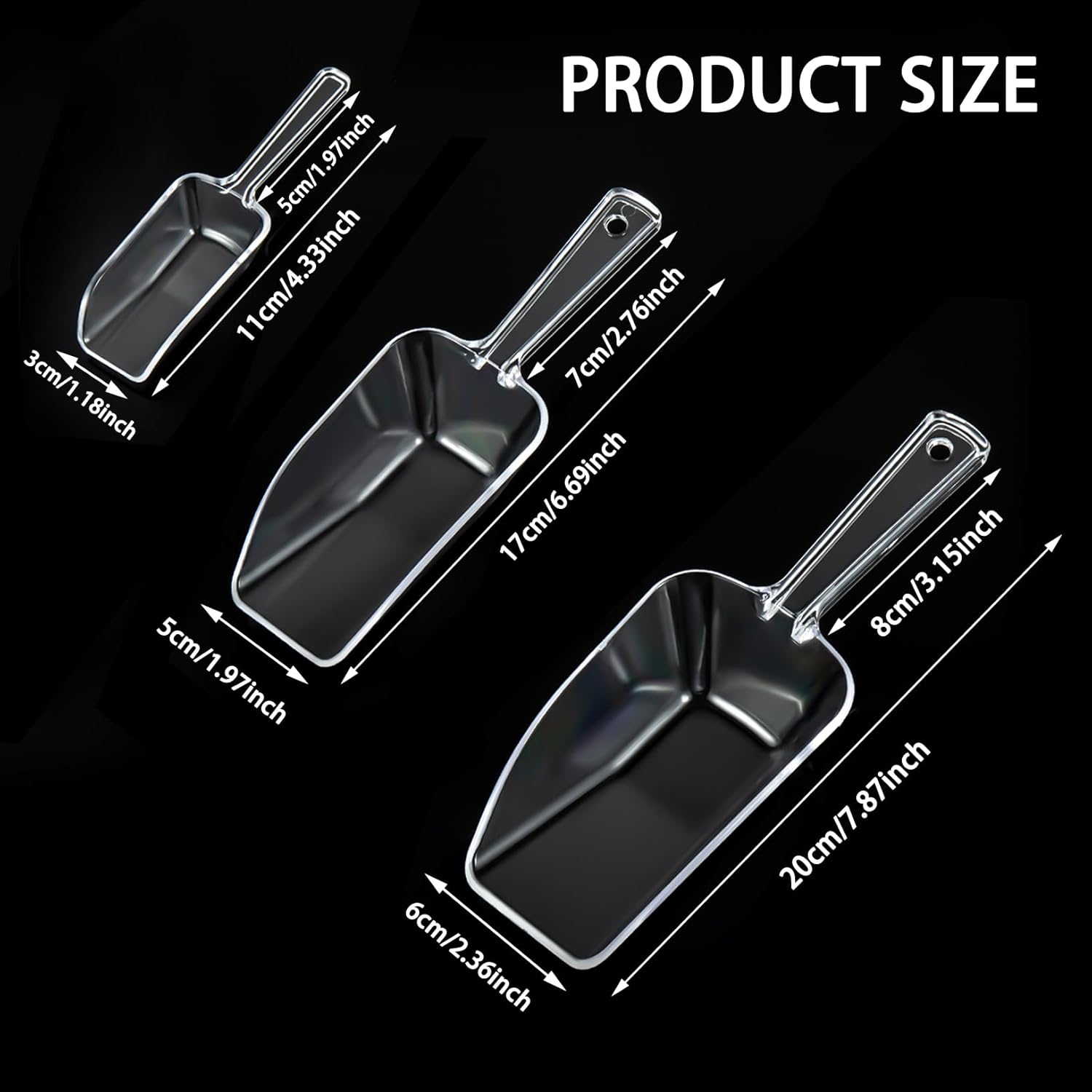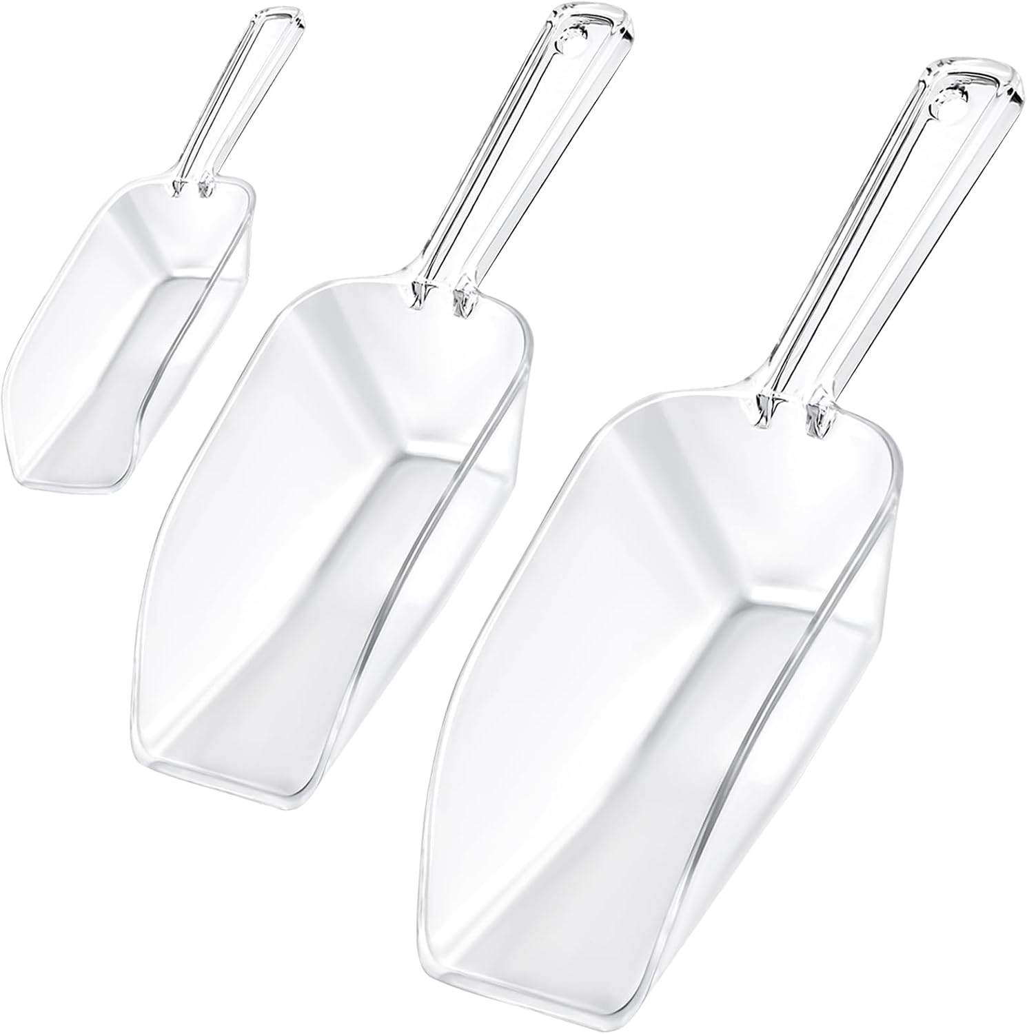 3 in 1 Clear Plastic Ice Scoop Set, Small Acrylic Serving Scoops for Candy Buffet, Canisters, Dry Goods Multi-Purpose Kitchen Mini Food Scoop for Coffee, Flour, Sugar, Salt, Wedding Desserts (L&M&S)