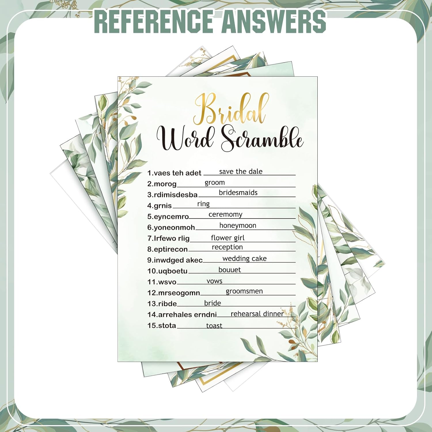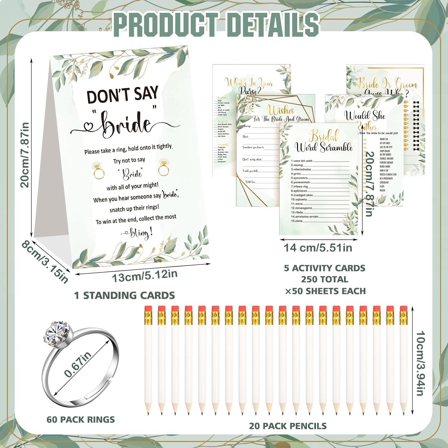Estune 331 Pcs Bridal Shower Games Supplies, 5 Sets 250 Pcs Wedding Cards 1 Put a Ring on It Bridal Shower Games with 60 Rings and 20 Pencils(Green Leaves)