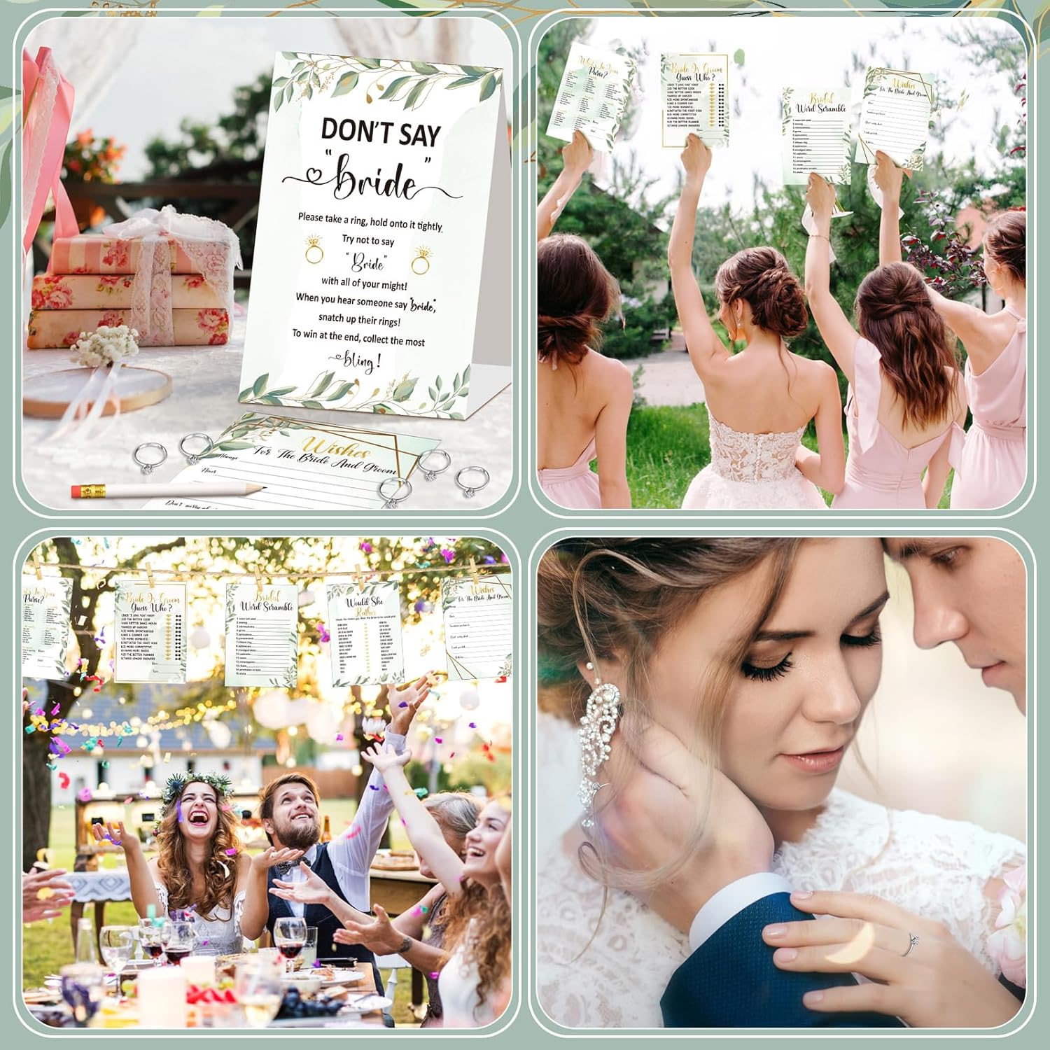 • Quality and Reliable: the wedding games cards are made of paper, quality and reusable to serve you for a long time, measuring approx. 7.87 x 5.51 inches/ 20 x 14 cm, the pencils are made of wood and are approx. 4 inches, the bridal shower rings are made of alloy, adjustable and lightweight to wear