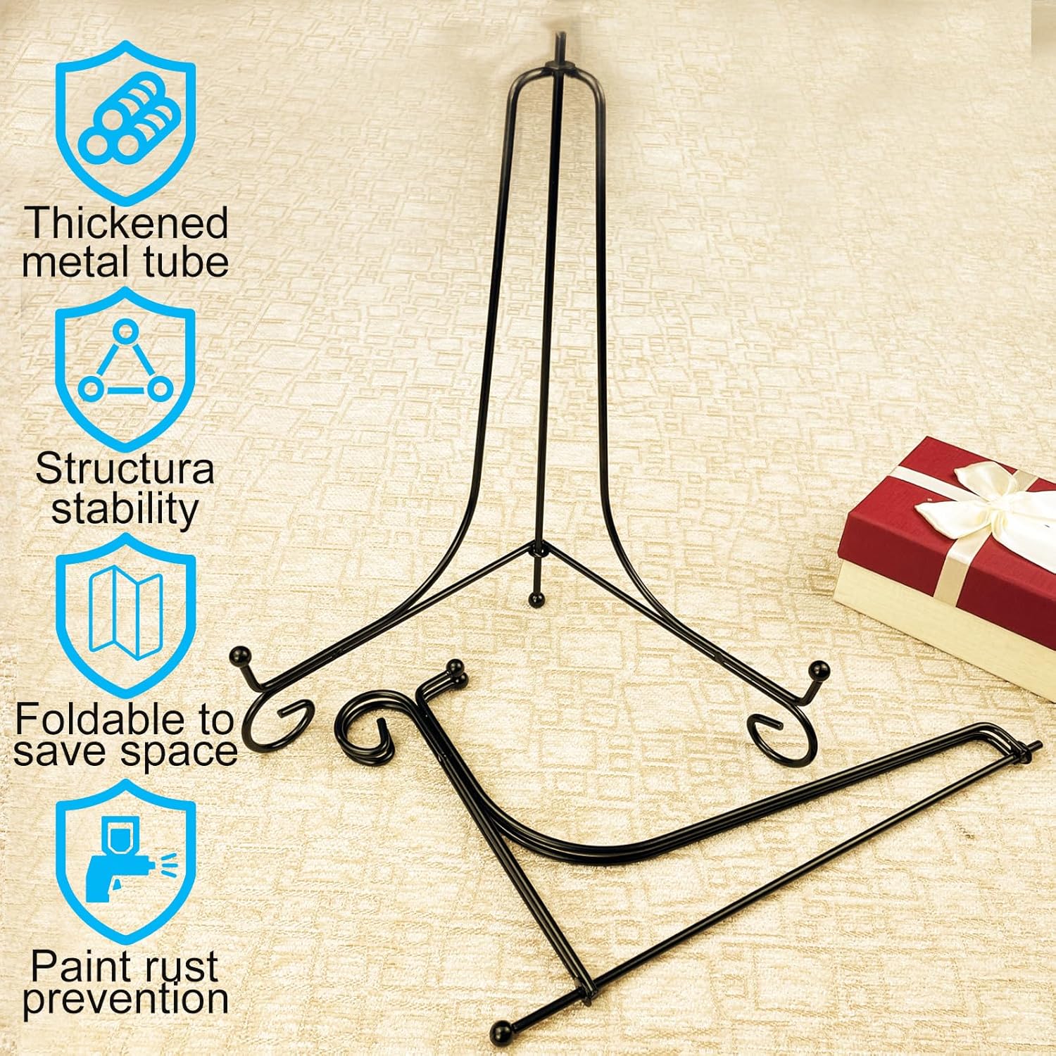 • Exquisite folding design: Easel stand is exquisitely designed to fold flat for easy carrying and easy storage, and take up less space when not in use