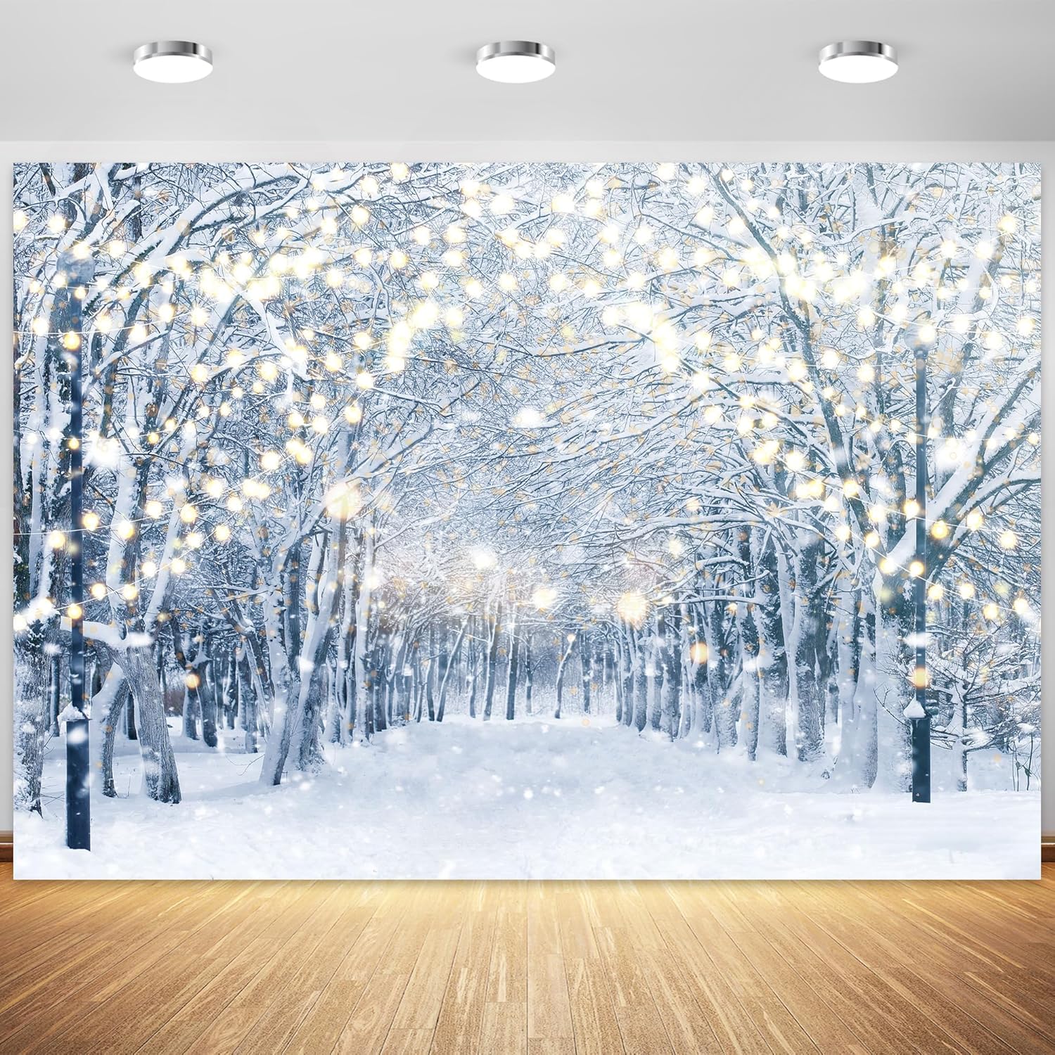 10x8FT Winter Snowy Scene Photography Backdrop Wonderland Snowflake Tree Snow Background Bokeh Glitter White Snow Forest Landscape Party Photo Booth Studio Props