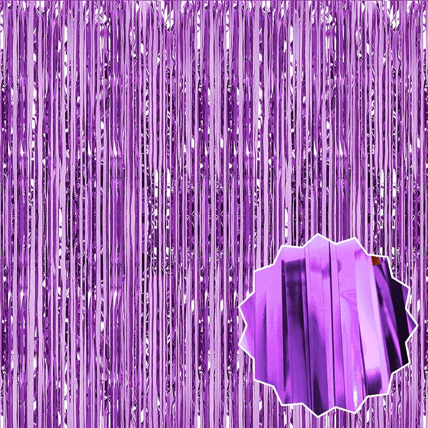 6 Pack Light Purple Foil Fringe Curtains Backdrop, 3.28 x 8.2 Ft Metallic Streamers Tinsel Curtains Background for Photo Booth, Birthday, Weddings, Carnivals, Graduation, Themed Party Decorations