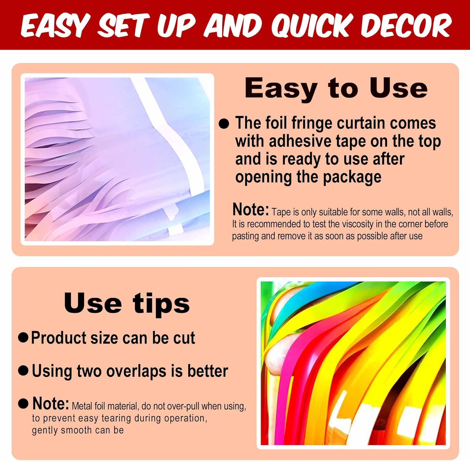 • Easy to Use: The tinsel foil fringe streamers curtain backdrop comes with double sided tape on the top, gently peel plastic strip off and it would be very easy to paste on smooth surfaces such as wall, window, table, door or anywhere you like