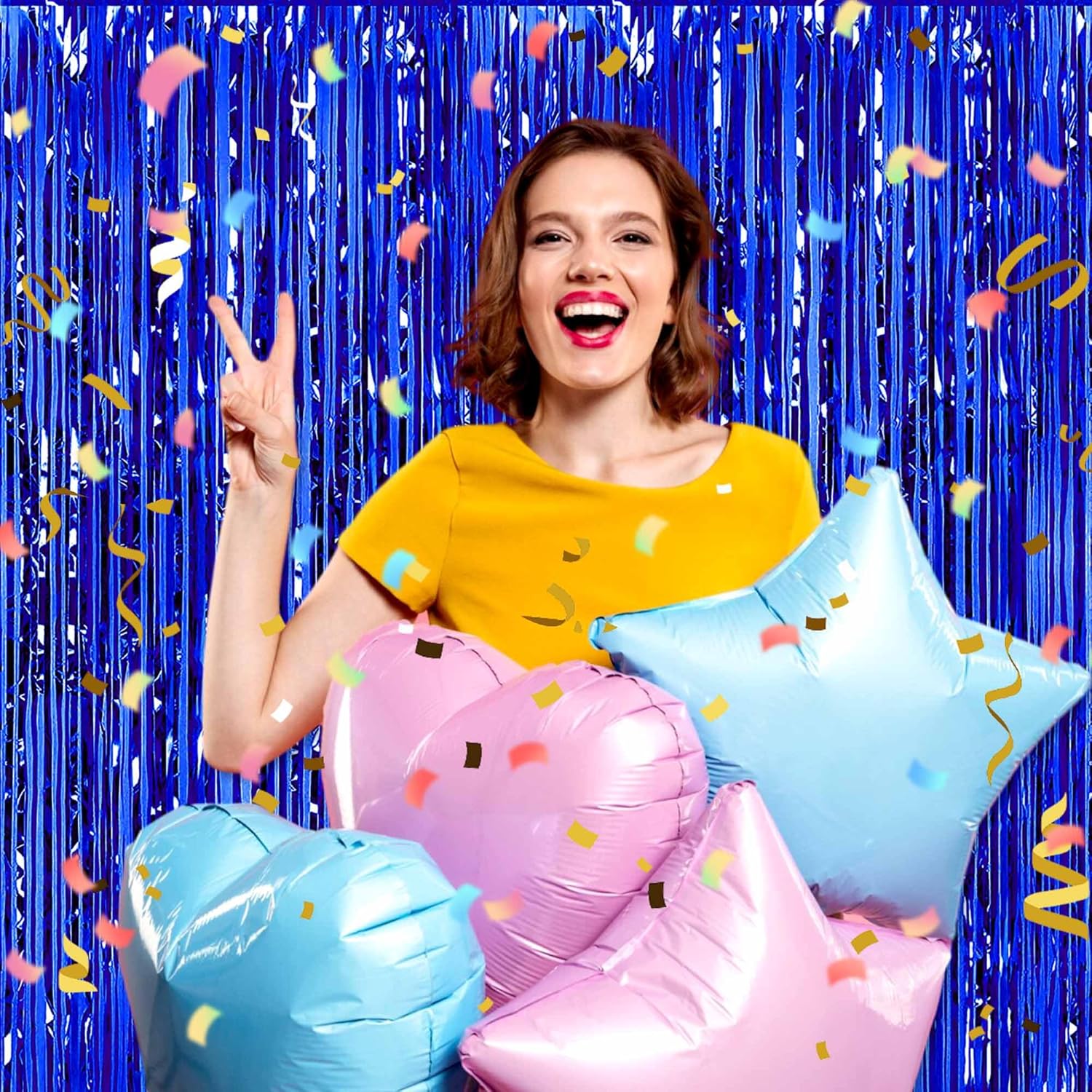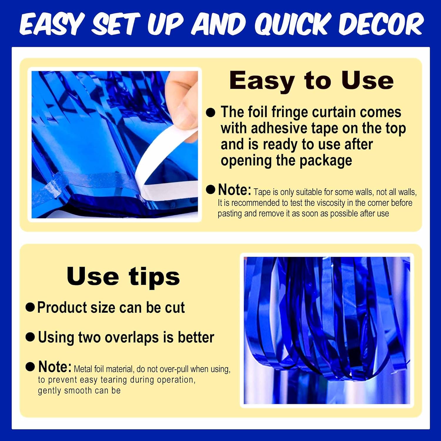 • Package and size: 3 Packs Foil Fringe Streamers Curtain Backdrop. The size is 3.28 x 9.8 feet. It's long, enough to fit any party occasion. Made of metallic foil material, shiny and creating dazzling effects, adding luxury and visual impact to the party