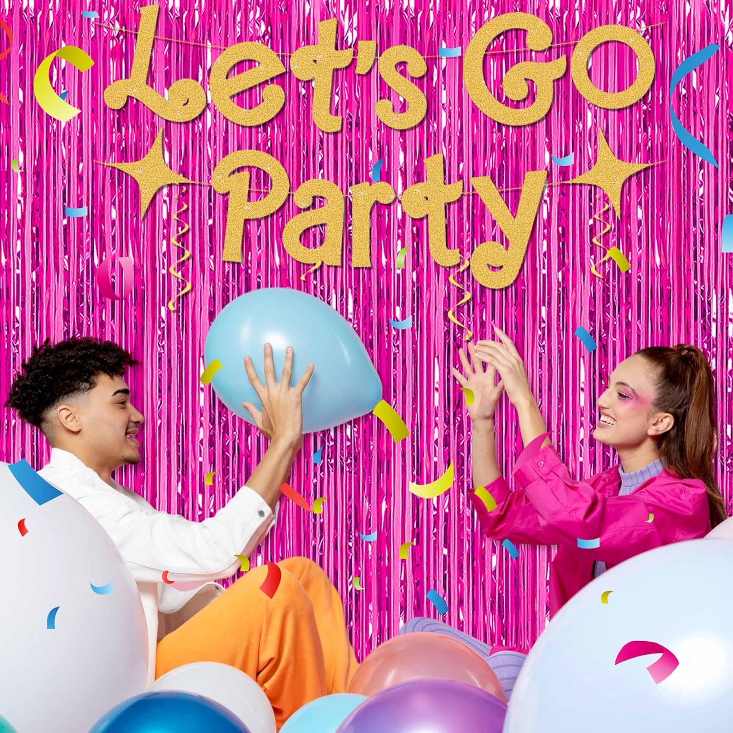 6 Pack Fuchsia Foil Fringe Curtains Backdrop, 3.28 x 8.2 Ft Metallic Streamers Tinsel Curtains Background for Photo Booth, Birthday, Weddings, Carnivals, Graduation, Themed Party Decorations