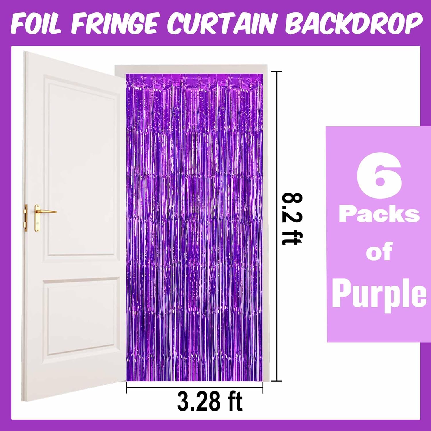 6 Pack Purple Foil Fringe Curtains Backdrop, 3.28 x 8.2 Ft Metallic Streamers Tinsel Curtains Background for Photo Booth, Birthday, Weddings, Carnivals, Graduation, Themed Party Decorations