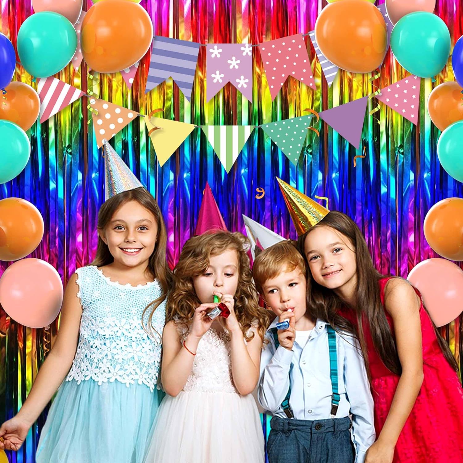 6 Pack Rainbow Foil Fringe Curtains Backdrop, 3.28 x 8.2 Ft Metallic Streamers Tinsel Curtains Background for Photo Booth, Birthday, Weddings, Carnivals, Graduation, Themed Party Decorations