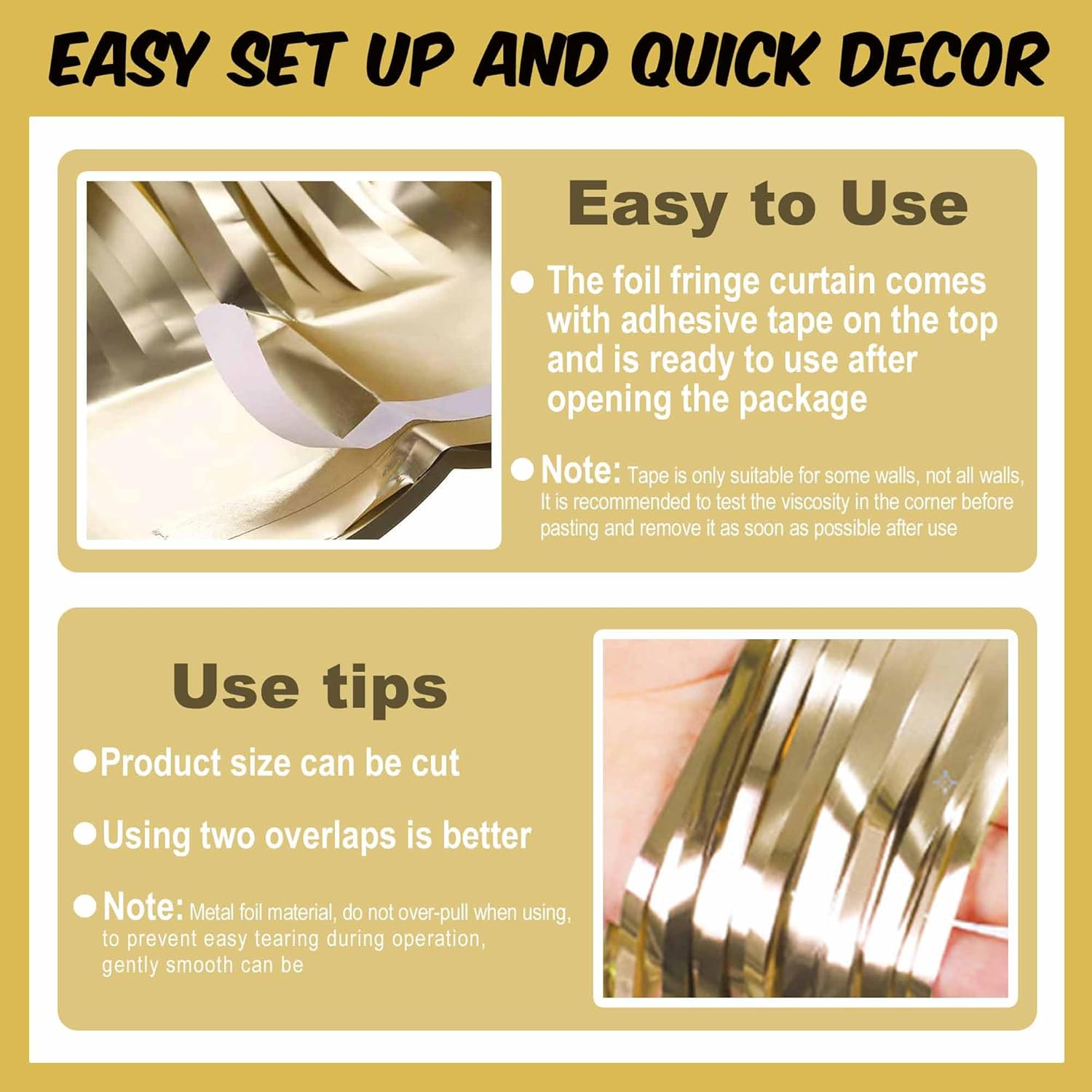 • Easy to Use: The tinsel foil fringe streamers curtain backdrop comes with double sided tape on the top, gently peel plastic strip off and it would be very easy to paste on smooth surfaces such as wall, window, table, door or anywhere you like
