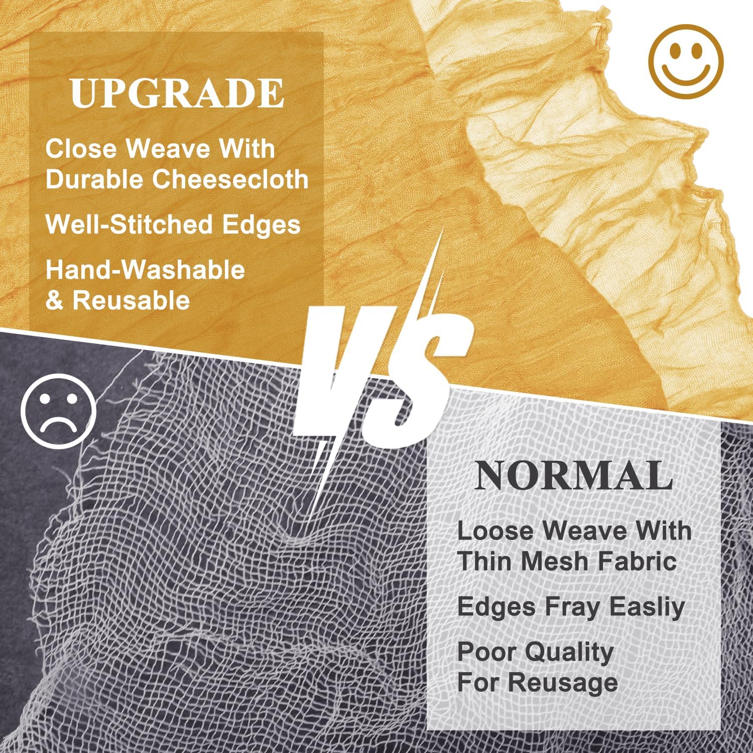 • 【Cheesecloth Table Runner】 Size: 35" W x 120" L. You will get 1 piece 10FT length cheesecloth table runner. The sheer rustic table runner is long enough to span a large table and drape gracefully across the table. It will gently sway in the wind, adding a romantic atmosphere to your occasion. These eye-catching gauze table runners are ideal for arranging an elegant, stylish tablescape.