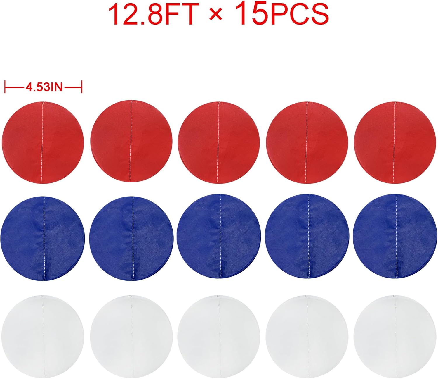 • ๐Ÿ”ตPACKAGE CONTAINS- 15 packs of royal blue red and white circle dot party garland streamer,each string is 12.8 feet/3.9 meters with 30 pcs polka dots, Total is 58.5meters/192 feet.