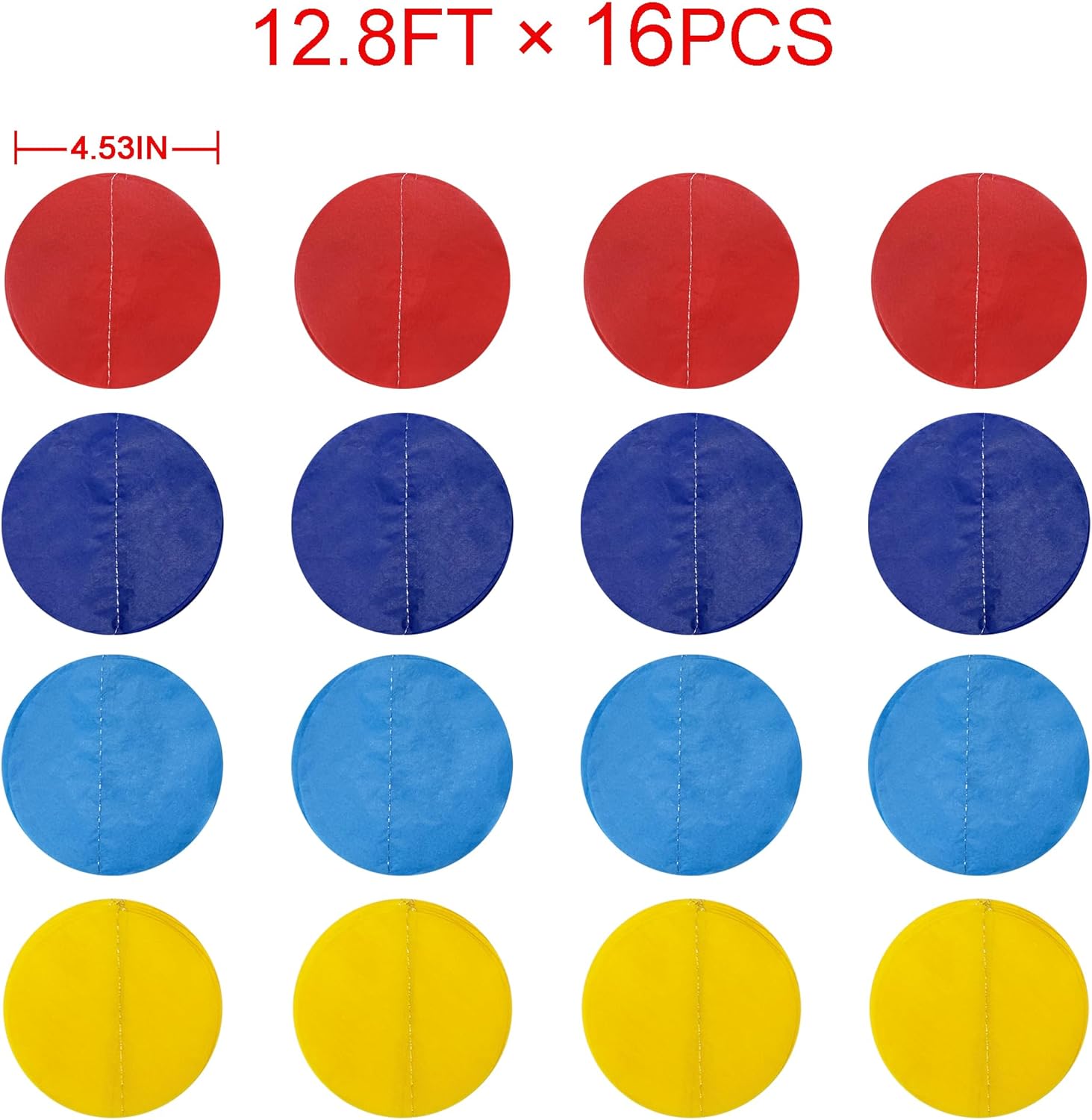 • đź”´PACKAGE CONTAINS- 16 packs of carnival circle dot party garland banner,Each string is 12.8 feet/3.9 meters with 30 pcs polka dots, Total is 62.4 meters/205 feet.