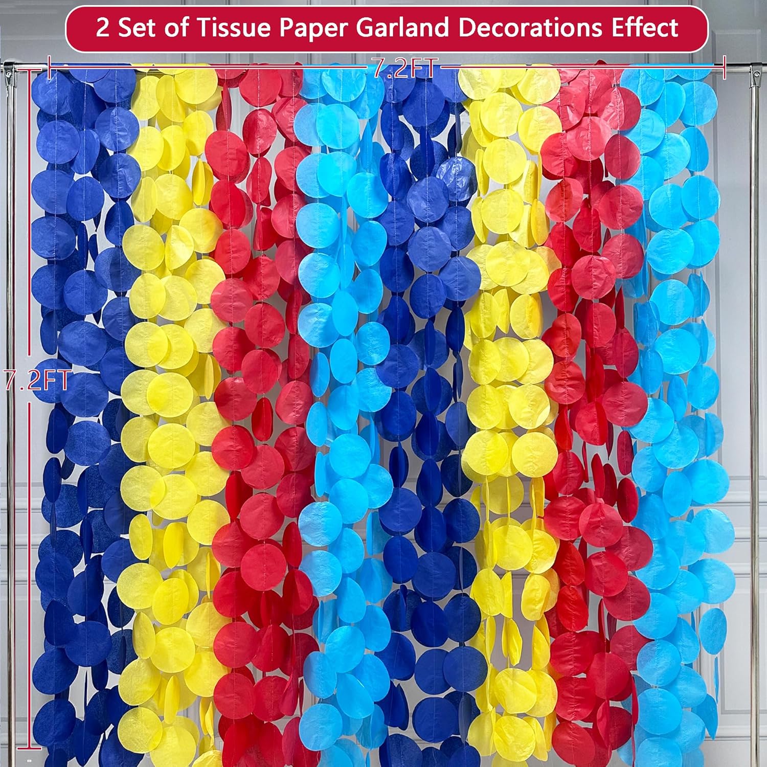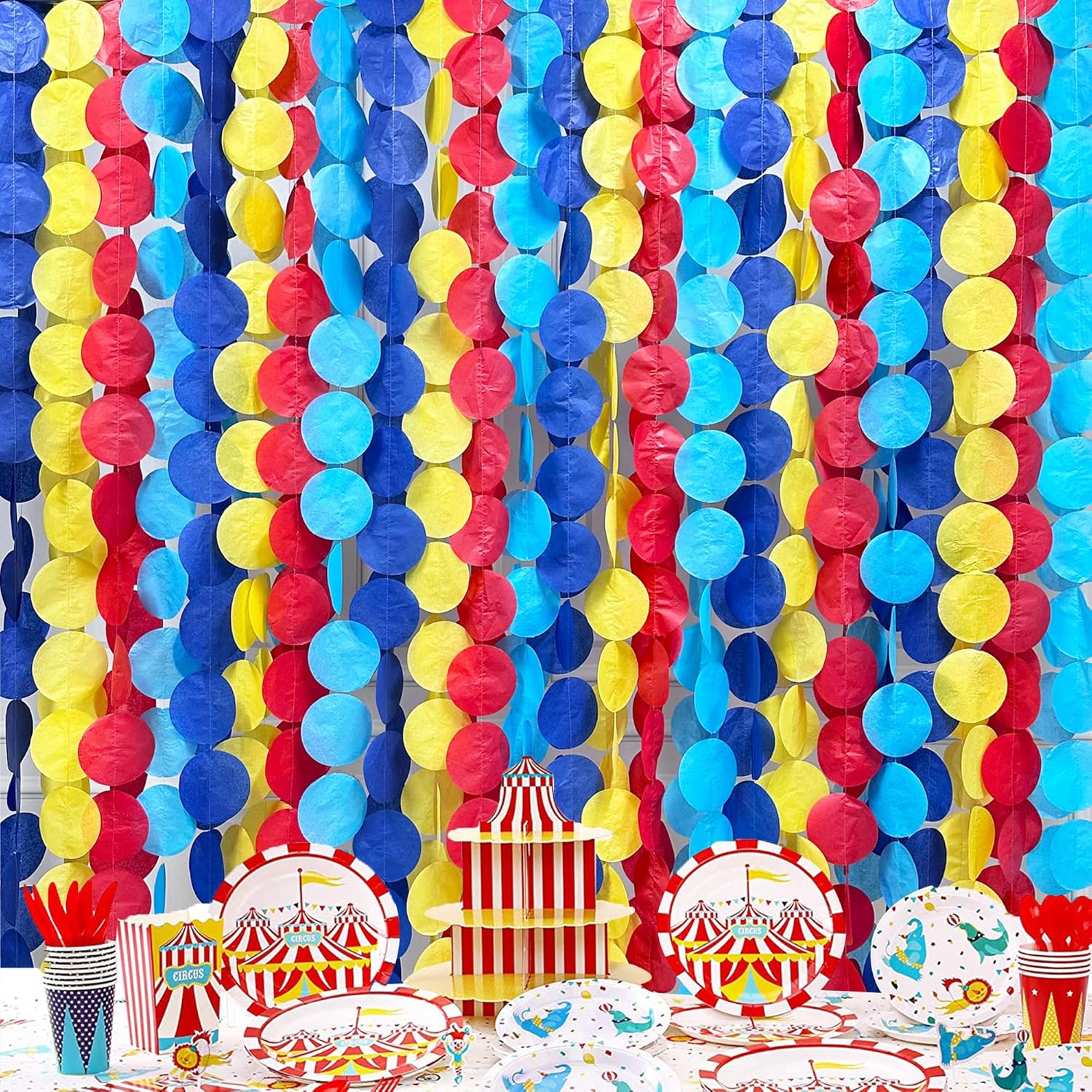 • 🔵ENVIRONMENTAL MATERIAL-Our circus clown theme big circle dot streamer garland are made of high quality tissue paper,carefully hand-made and machine-sewn together with thread.durable and reusable.Unroll & unwrap the tissue paper garland carefully. Due to delicate nature of thread, may tangle.