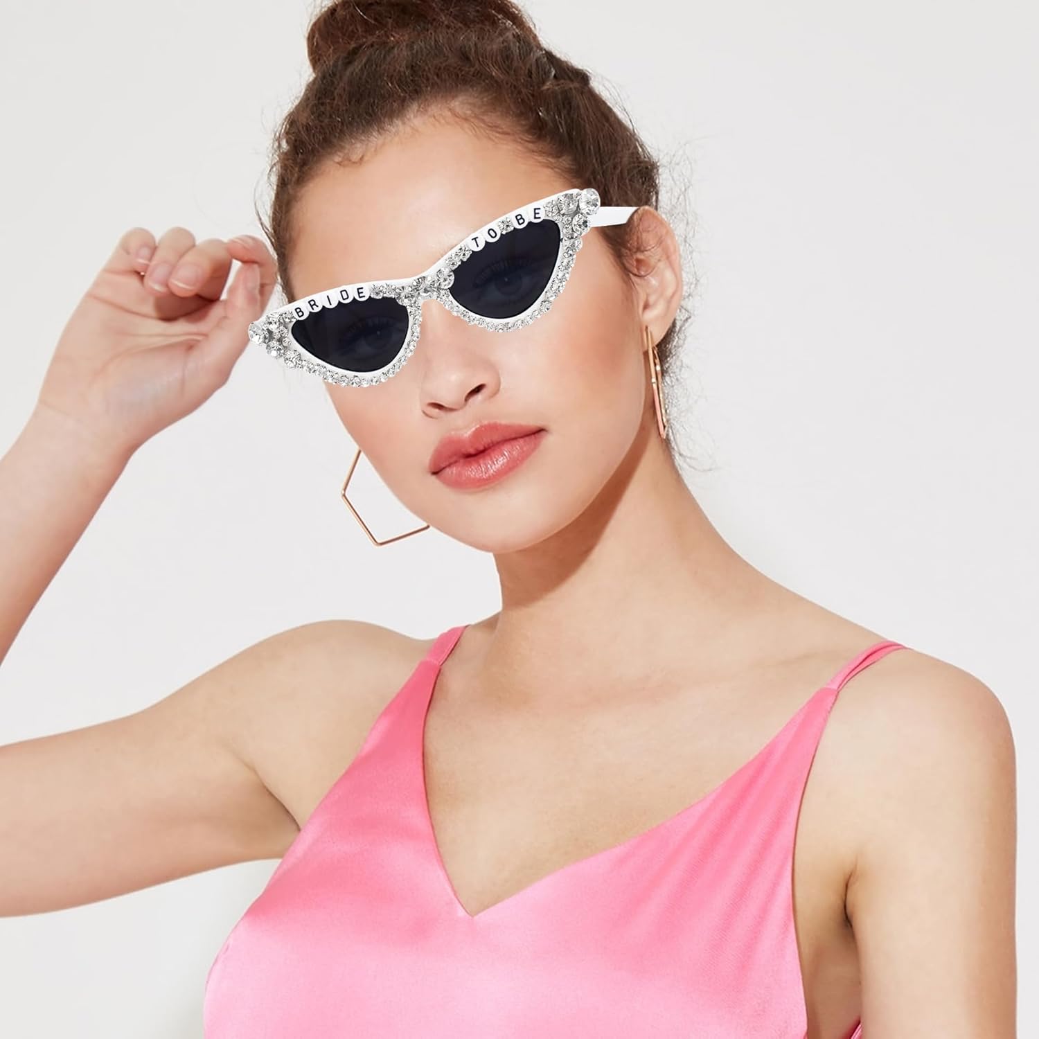 • 👰👰【BRIDE TO BE DESIGN With Rhinestone】- These cat eye sunglasses bachelorette party are adorned with dazzling and "BRIDE TO BE" lettering, symbolizing timeless love and happiness. Once you put them on, you'll instantly become the center of attention at bachelorette and bride to be parties. Radiate elegance with these bride sunglasses!