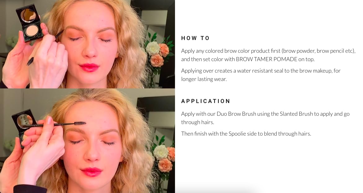• HOW TO USE: Use alone to groom and shape brows. Apply after brow makeup. Does not change brow makeup color. Can also be layered with our Clear Brow Gel applied before Brow Wax Pomade for extra hold. Easy to apply with our elke Duo Brow Brush. Apply with the angled brush to brow hairs. Blend with the soft spoolie brush. ADD TO CART>