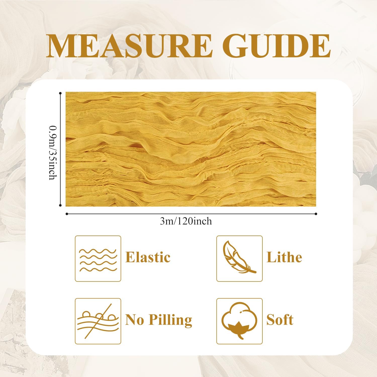 • 【Cheesecloth Table Runner】 Size: 35" W x 120" L. You will get 2 pieces 10FT length cheesecloth table runner. The sheer rustic table runner is long enough to span a large table and drape gracefully across the table. It will gently sway in the wind, adding a romantic atmosphere to your occasion. These eye-catching gauze table runners are ideal for arranging an elegant, stylish tablescape.