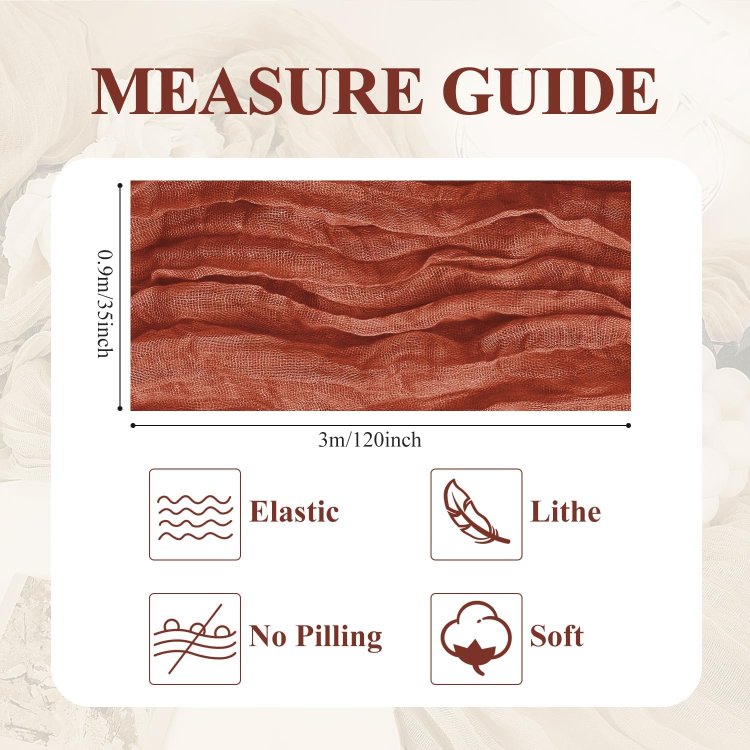 Asee'm 2pcs Cheesecloth Table Runner 120 Inches Long Terracotta Boho Gauze Cheese Cloth Runner 10FT Rustic Sheer Fall Table Runners for Thanksgiving Christmas Wedding Party Baby Shower Decoration