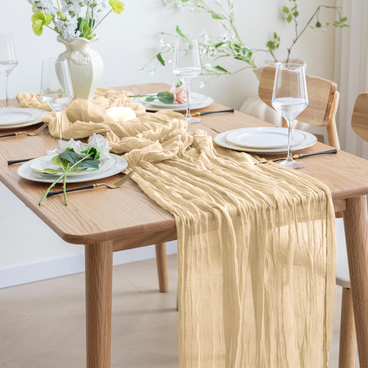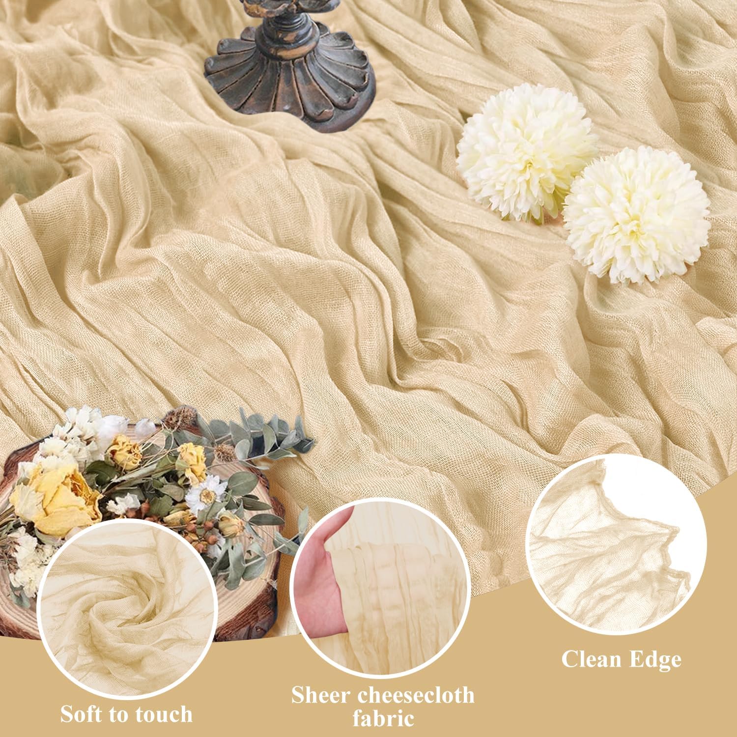 Asee'm 3pcs Cheesecloth Table Runner 120 Inches Long Sand Boho Gauze Cheese Cloth Runner 10FT Rustic Sheer Table Runners for Christmas Wedding Party Baby Shower Spring Easter Decoration