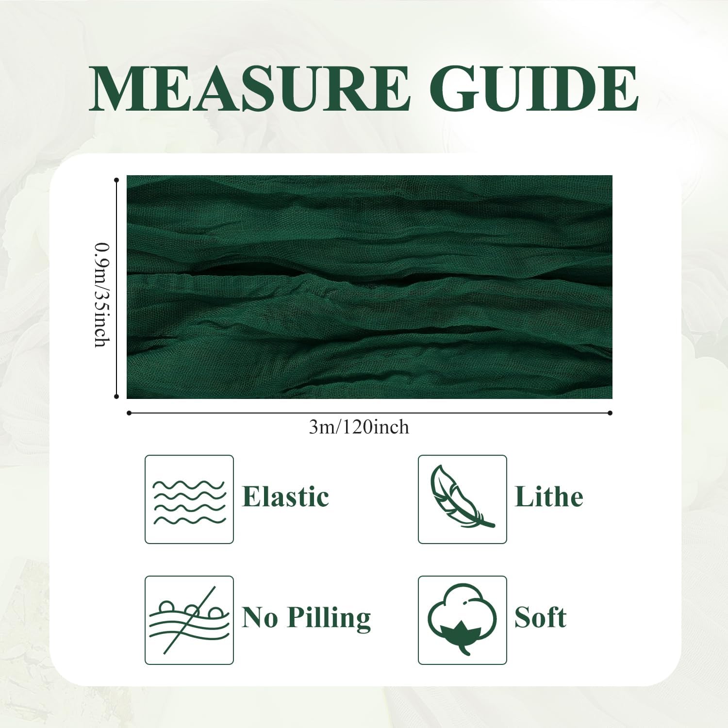 Asee'm 2PCS Table Runner Cheesecloth 10FT Emerald Green Boho Gauze Fabric Rustic Sheer Cheese Cloth Runners for Wedding Bridal Shower Party Spring Easter Decoration