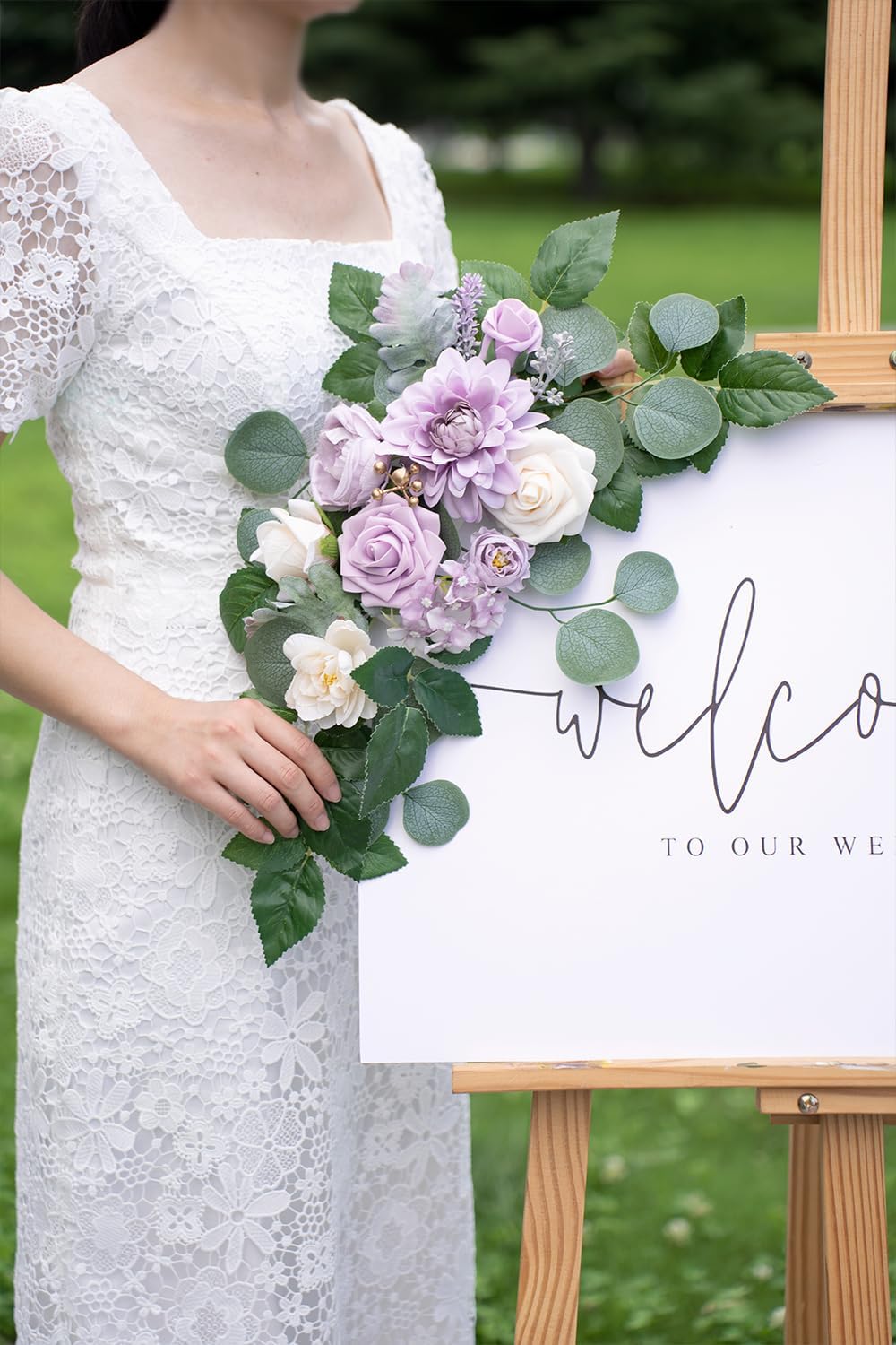 WEIERYUE(Pack of 2 Artificial Flowers Decorations,Artificial Arch Backdrop Garlandfor Ceremony Party Reception Entrance Welcome Easel Door Floral Decor Wall Home Entryway Outdoor(Cream Purple)