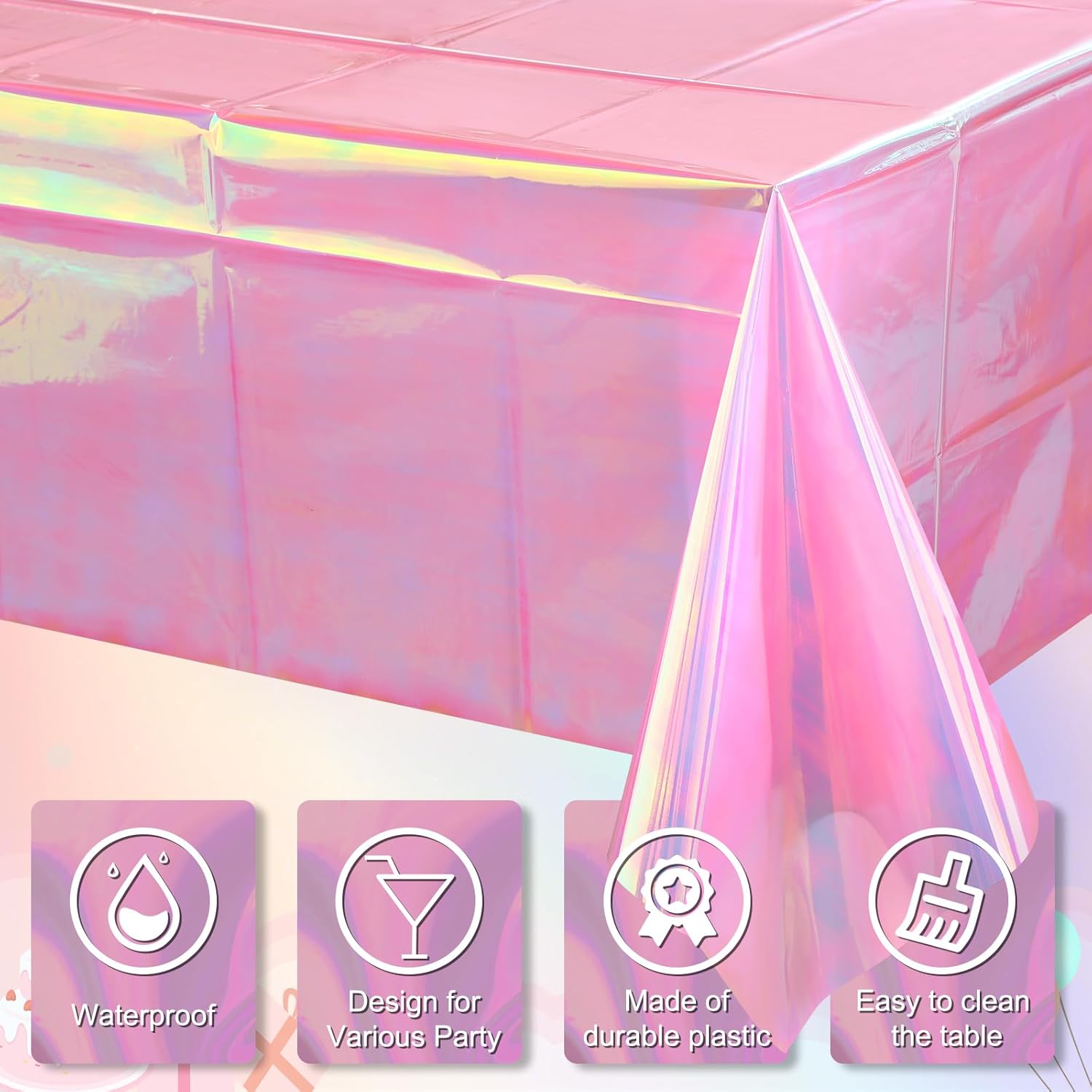 3 Pack Iridescent Plastic Tablecloth, Shiny Disposable Laser Rectangle Table Covers, Holographic Foil Tablecloth Party Decorations for Birthday Bridal Wedding Anniversary Party Supplies, 50 x 100 Inch