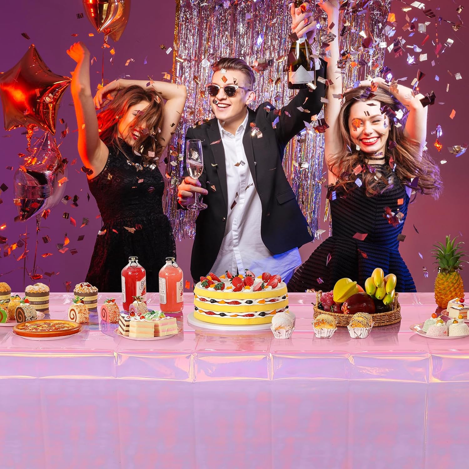 • Package Includes: You will receive 3 iridescent plastic tablecloths. Each holographic table cover measures approx 50 x 100 inches, fits any rectangle table up to 8 feet in length, suitable for party decoration.