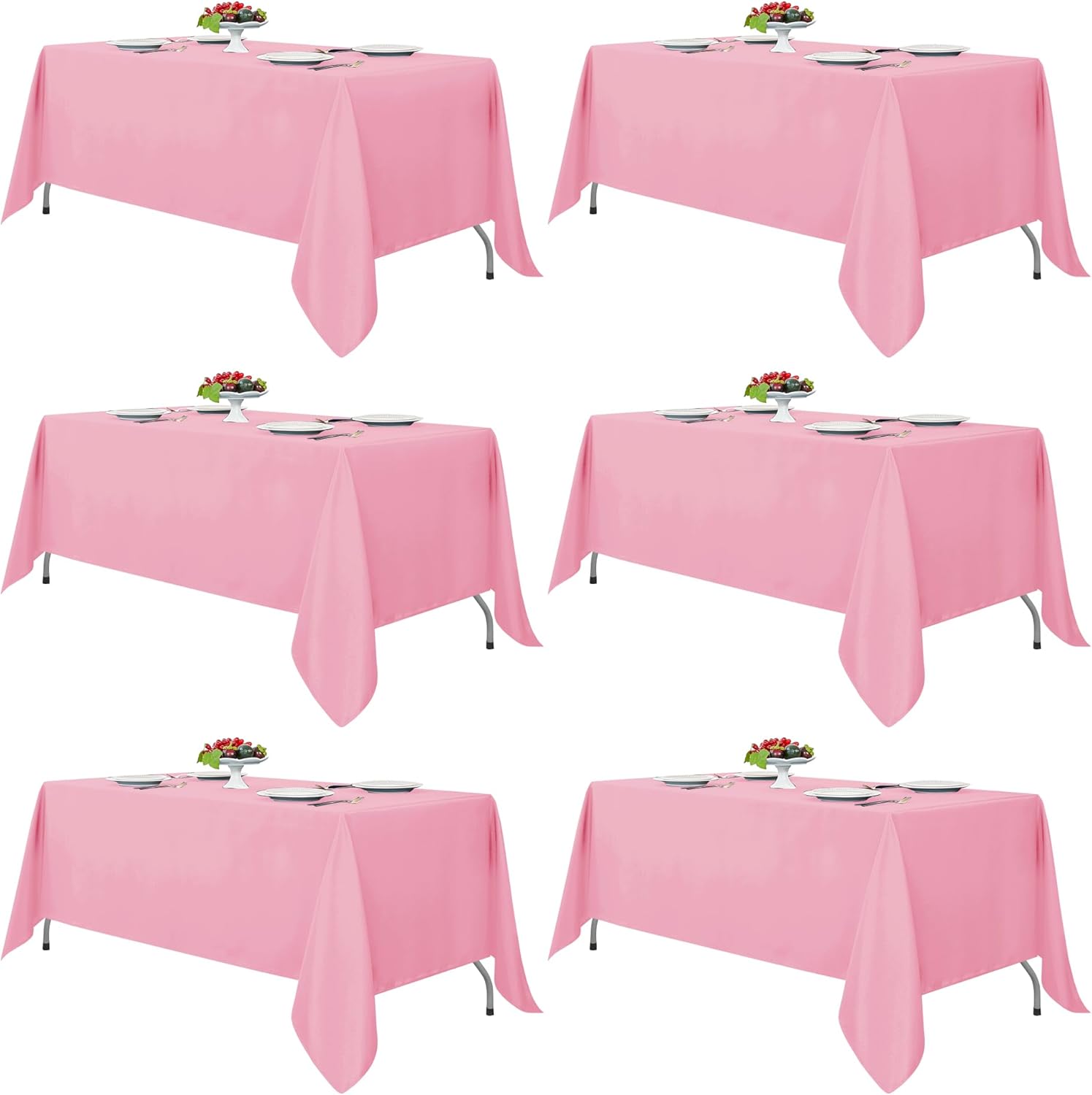 Fitable Pink Tablecloths for Rectangle Tables, 6 Pack - 70 x 120 Inches - Reusable and Washable Table Clothes for 6-8 Ft Tables, Polyester Fabric Table Covers for Wedding, Party, Banquet