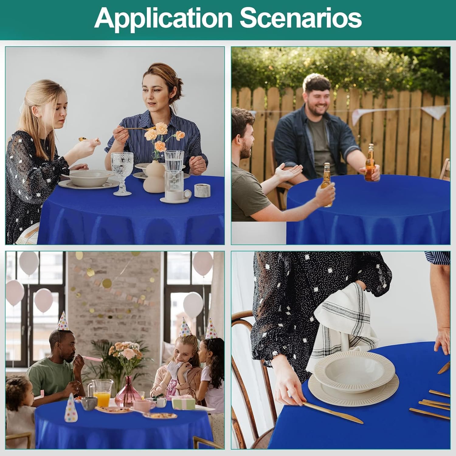 • 【Packing and Dimensions】Please measure the size of the table carefully before purchasing. You will get four pack blue tablecloth in one order. This table cloth is 120 inch in diameter